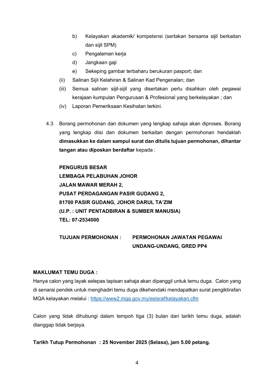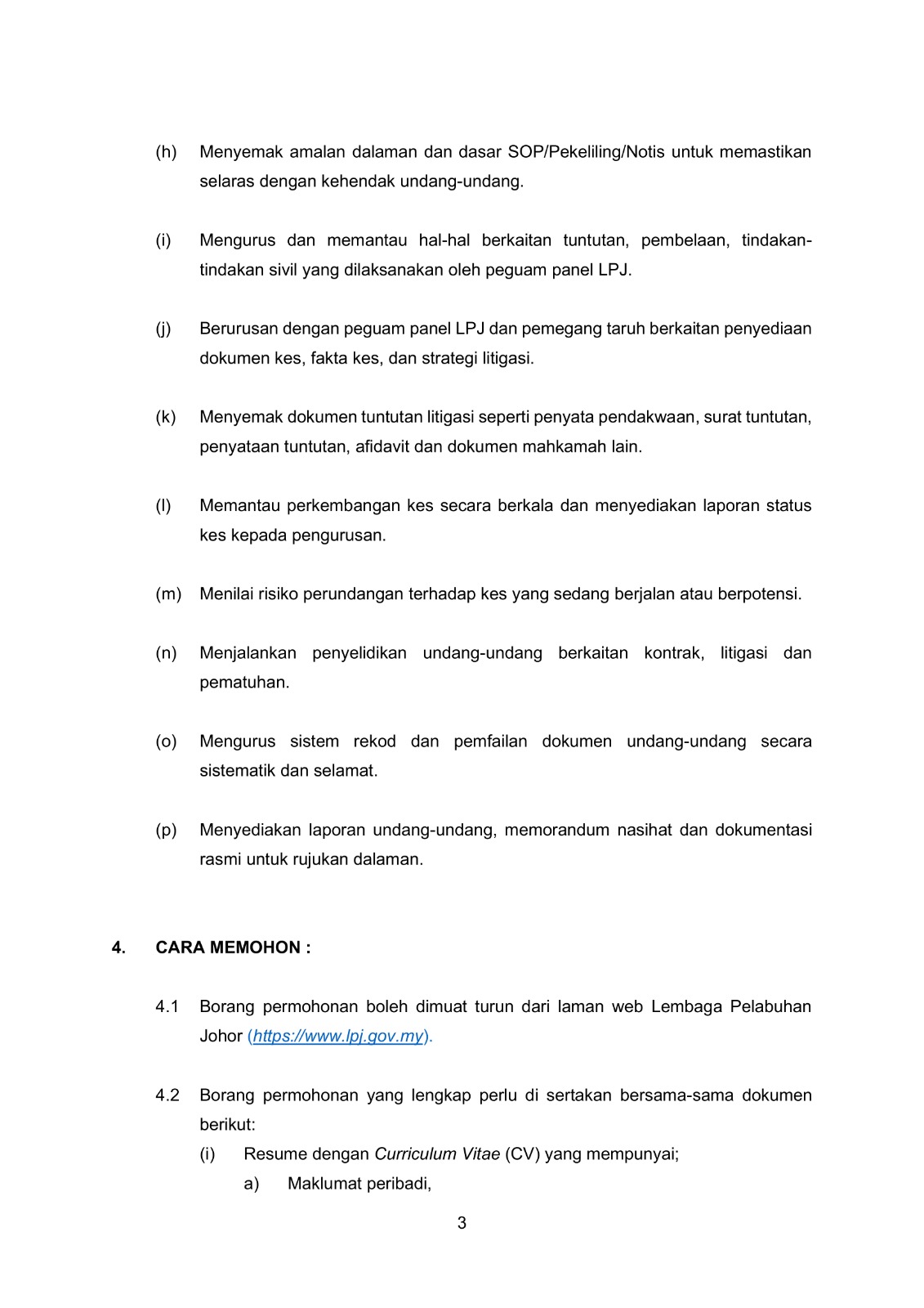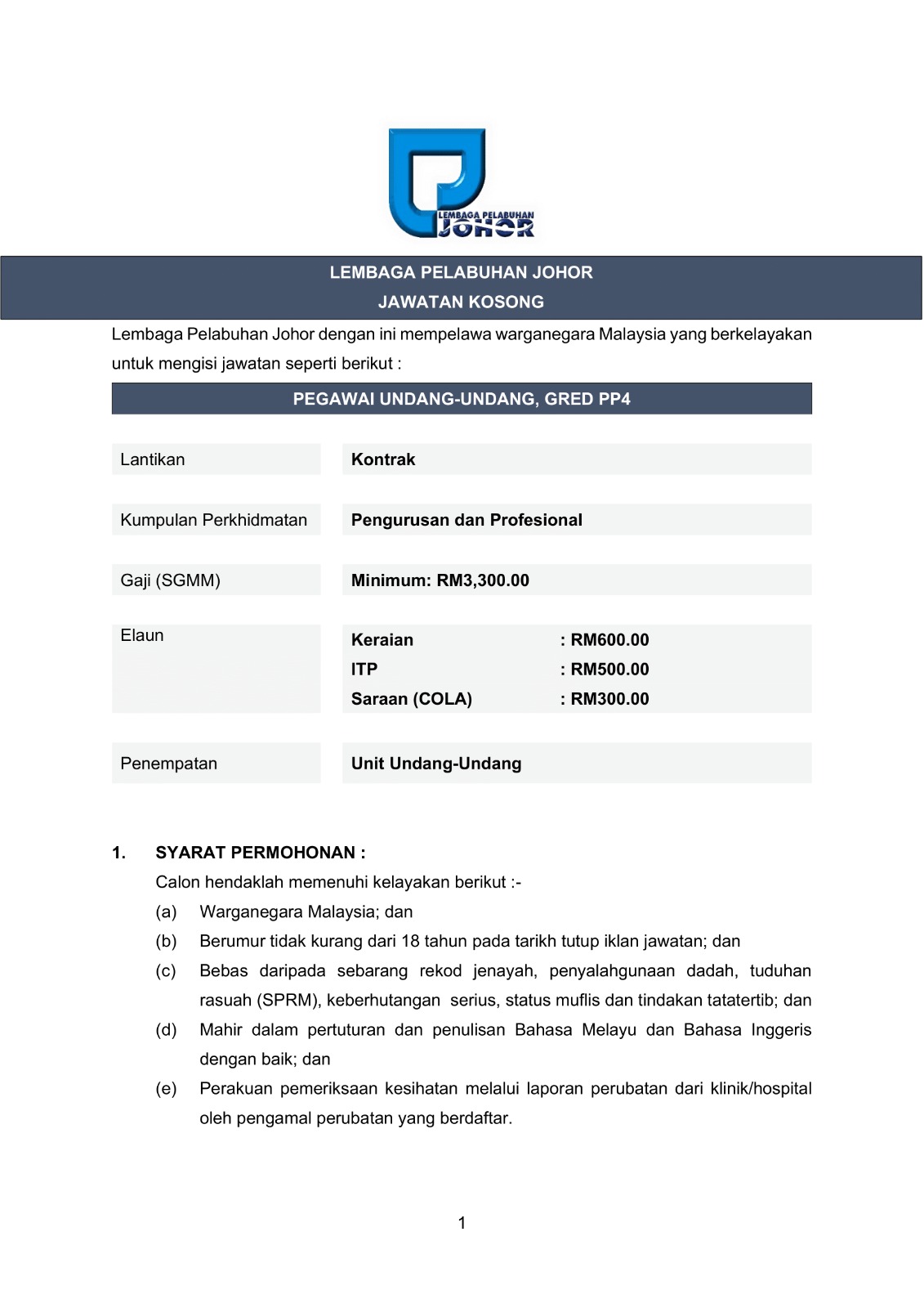 Iklan Jawatan Lembaga Pelabuhan Johor (LPJ) ~ Jawatan Kosong Pegawai Undang-Undang (Gred PP4) Klik Iklan Jawatan