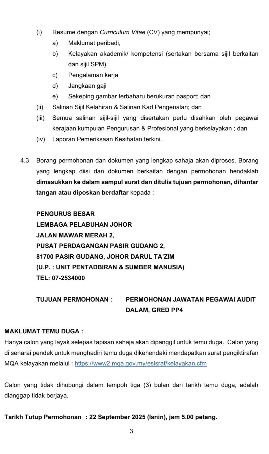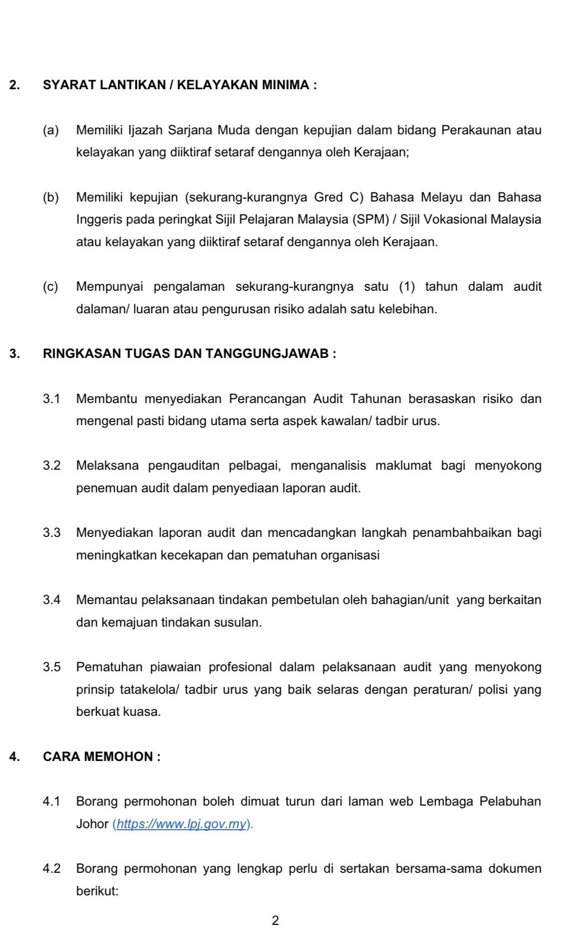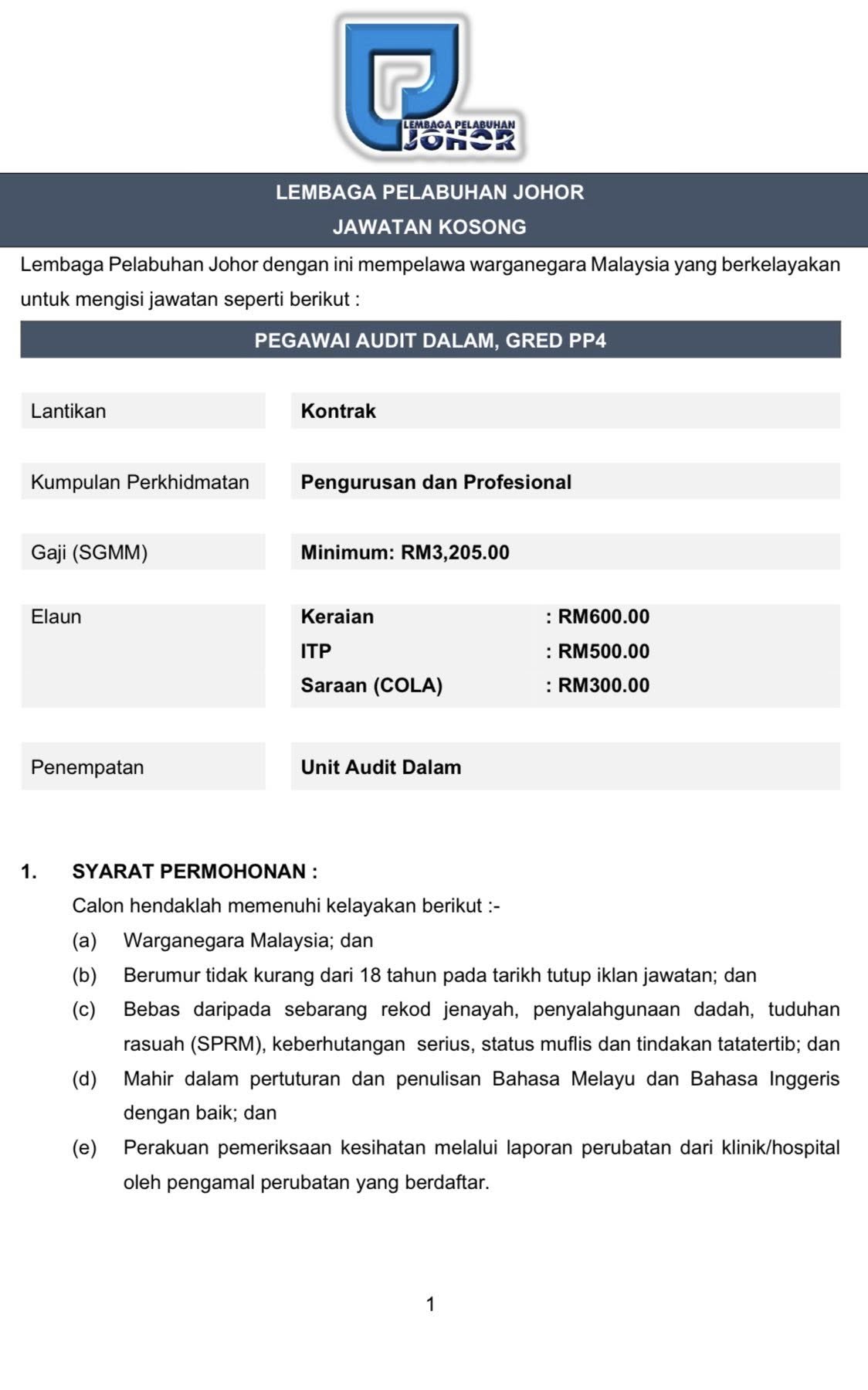 Iklan Jawatan Lembaga Pelabuhan Johor (LPJ)