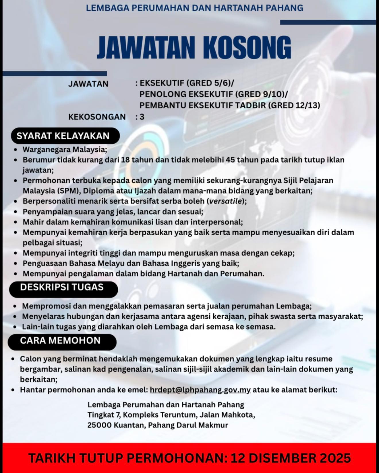 Iklan Jawatan Lembaga Perumahan Dan Hartanah Pahang (LPHP)