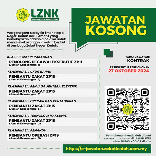 Iklan Jawatan Lembaga Zakat Negeri Kedah (LZNK)