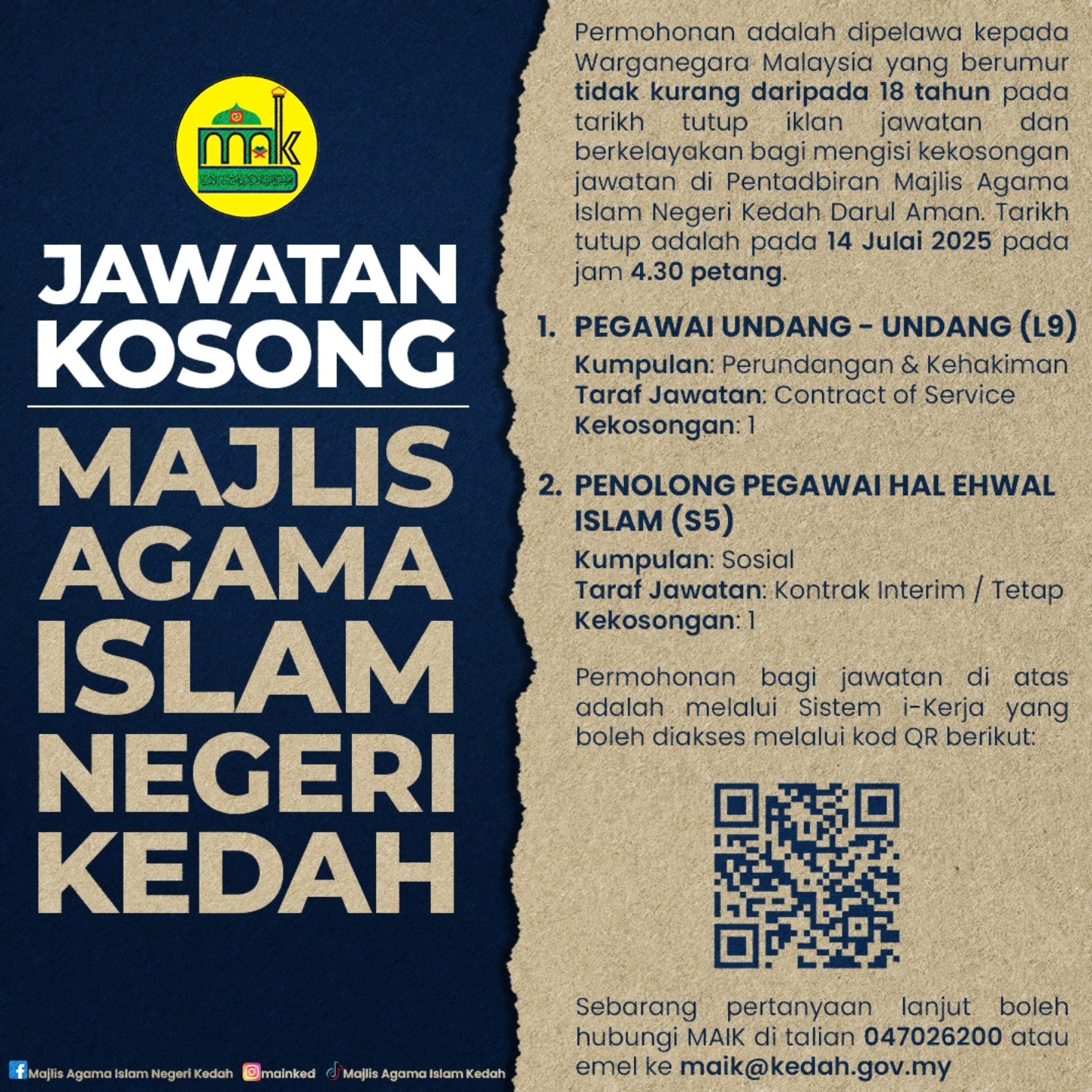 Iklan Jawatan Majlis Agama Islam Negeri Kedah