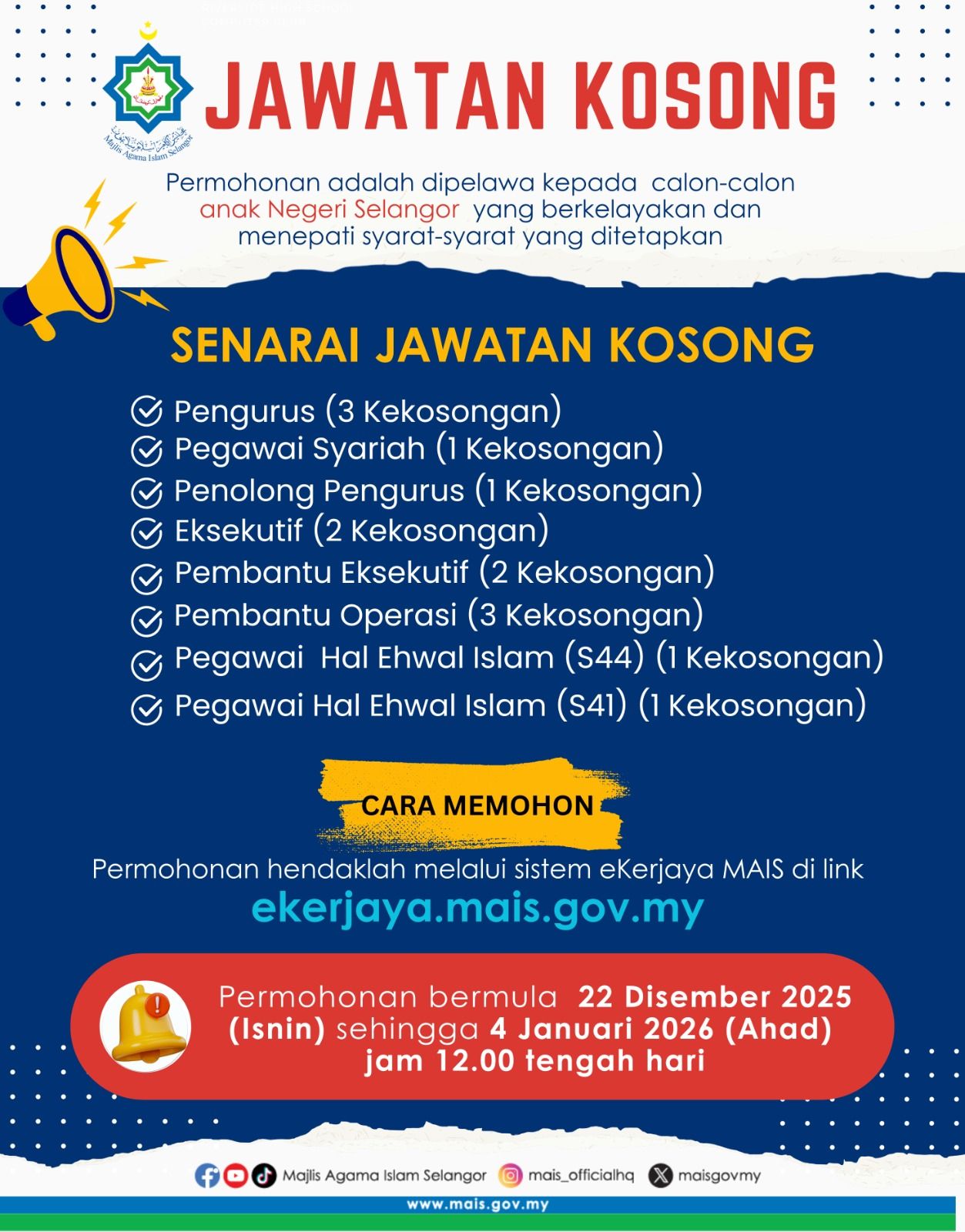 Iklan Jawatan Majlis Agama Islam Selangor (MAIS)