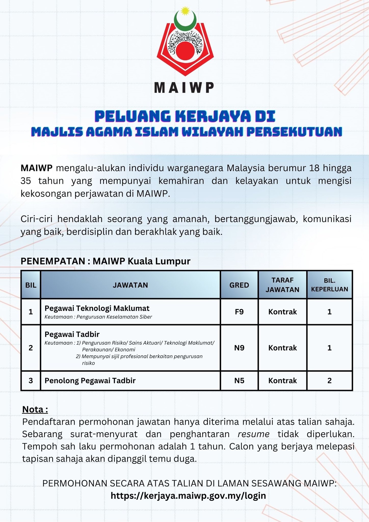 Iklan Jawatan Majlis Agama Islam Wilayah Persekutuan