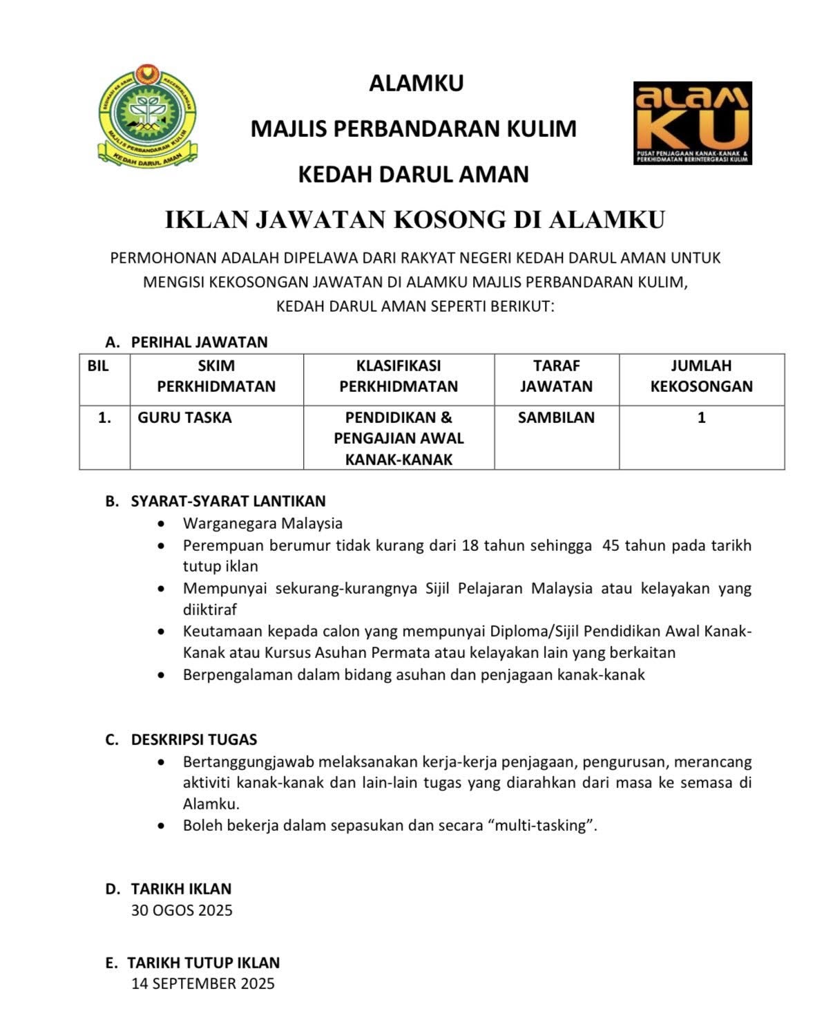 Iklan Jawatan Majlis Alamku Perbandaran Kulim