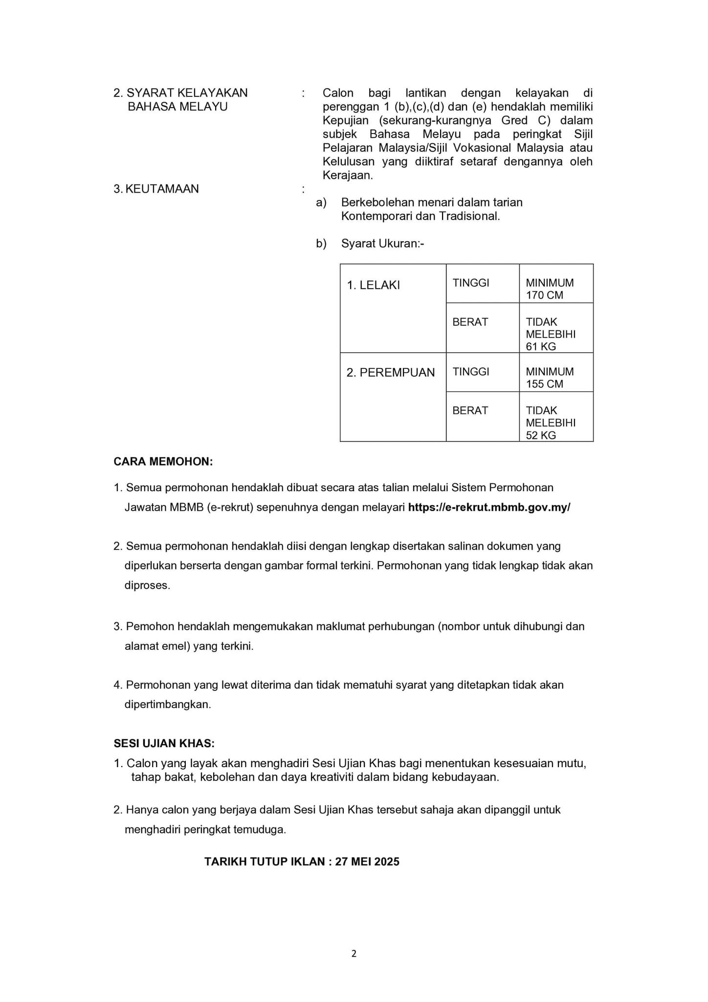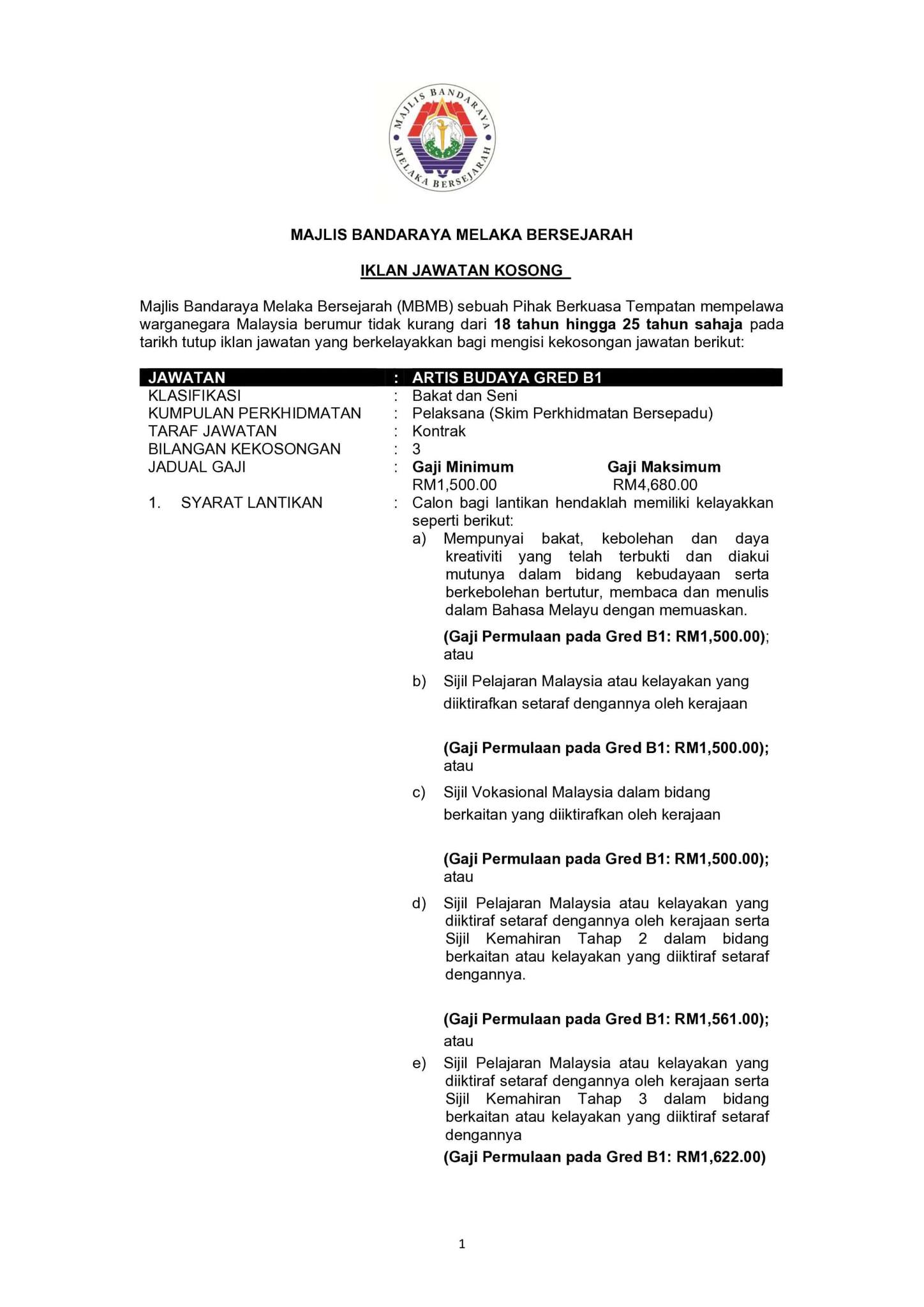 Iklan Jawatan Majlis Bandaraya Melaka Bersejarah (MBMB)
