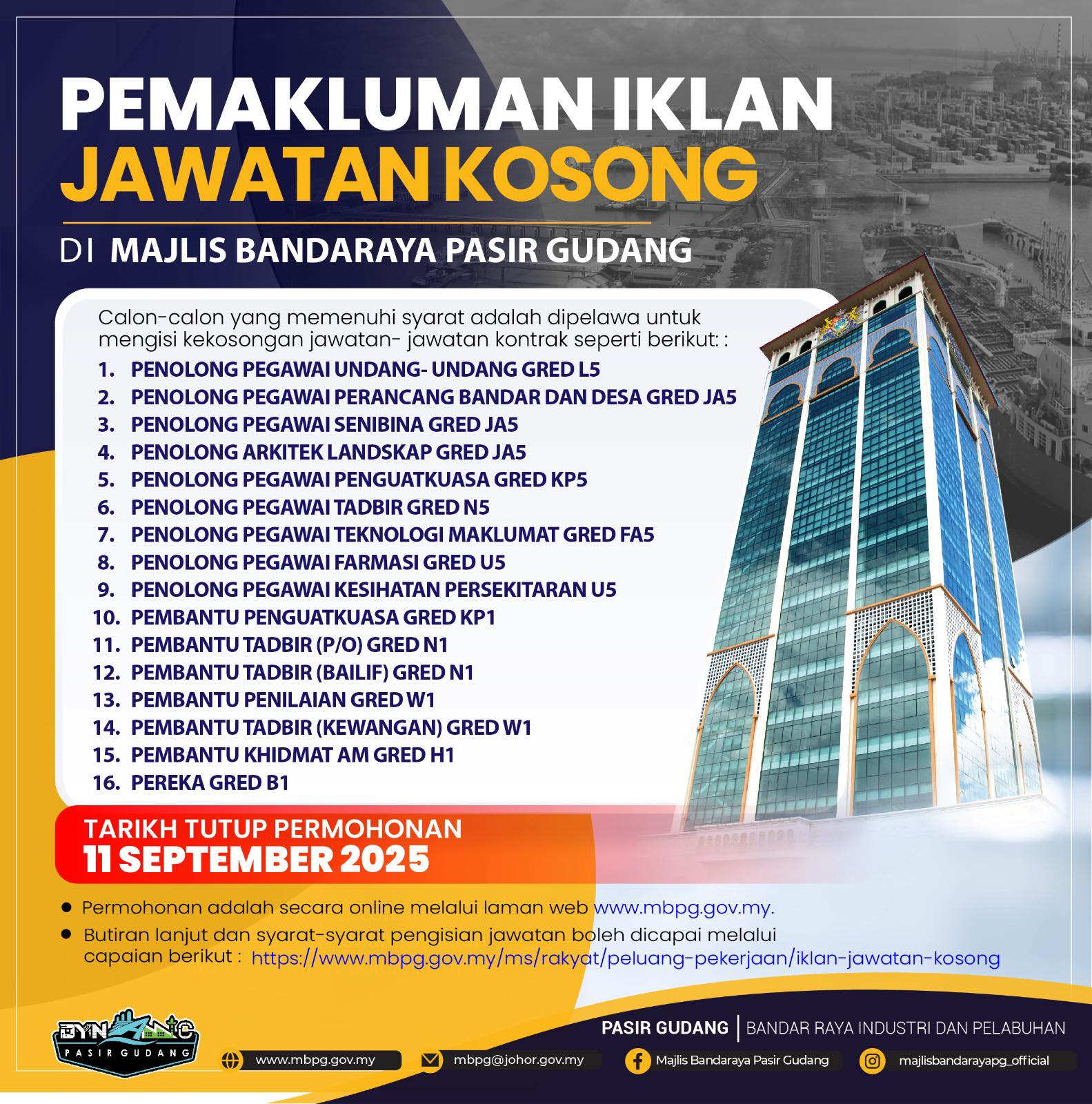 Iklan Jawatan Majlis Bandaraya Pasir Gudang