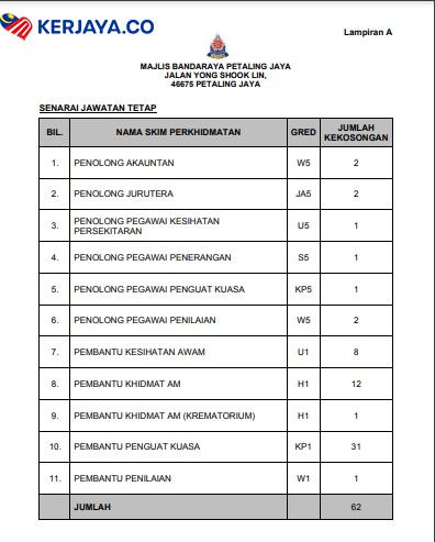 Iklan Jawatan Majlis Bandaraya Petaling Jaya