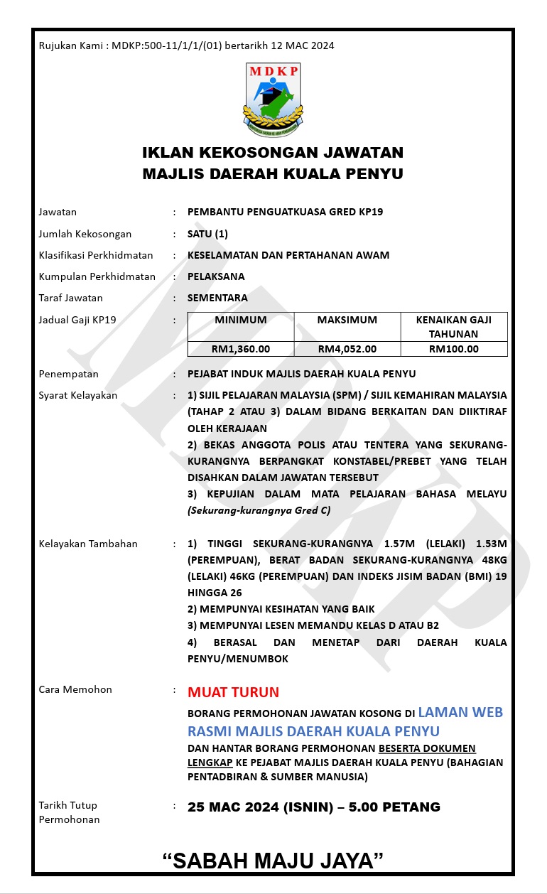 Iklan Jawatan Majlis Daerah Kuala Penyu