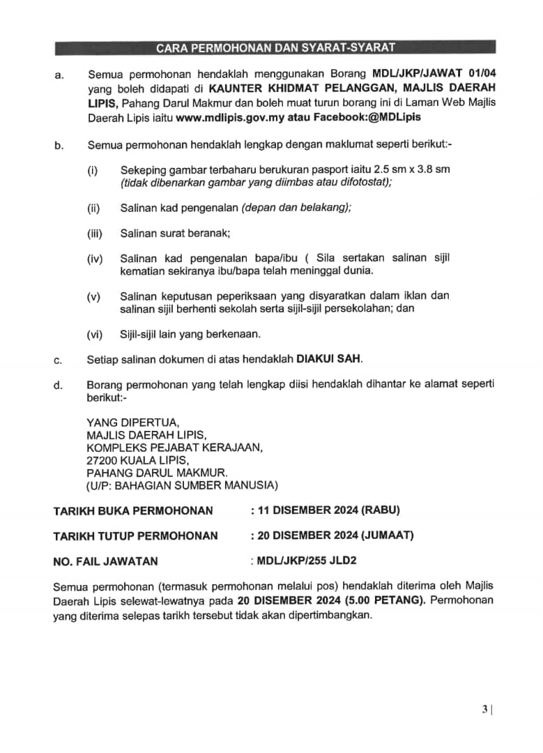 Return to "Iklan Jawatan Majlis Daerah Lipis"