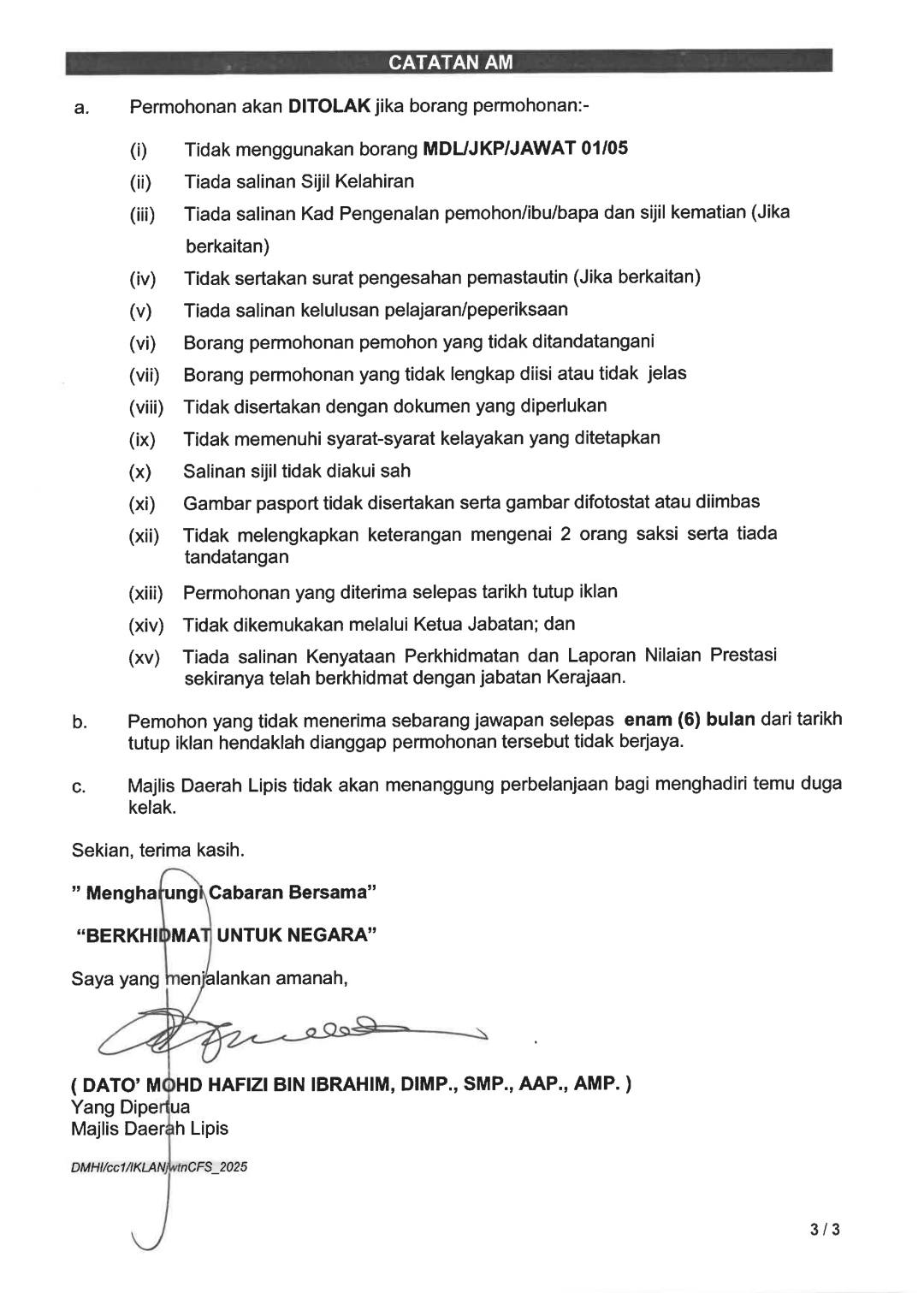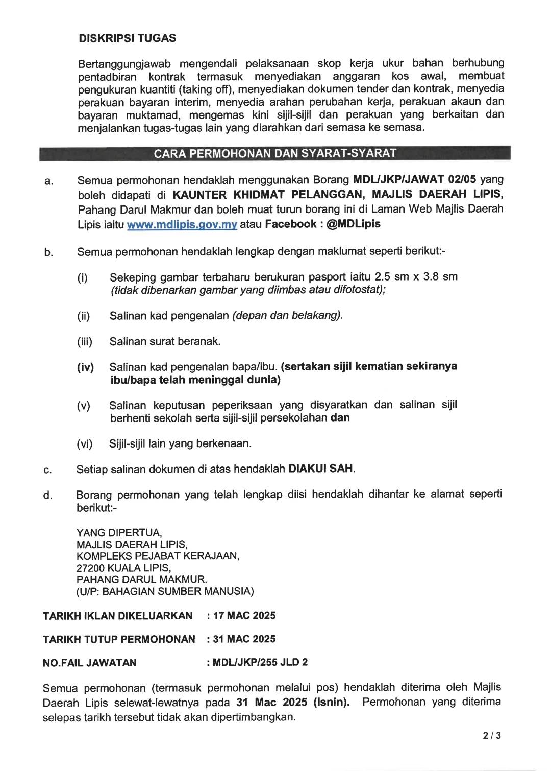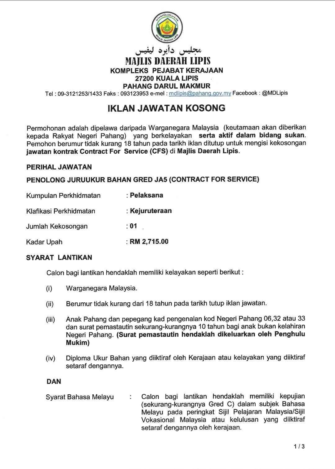 Iklan Jawatan Majlis Daerah Lipis