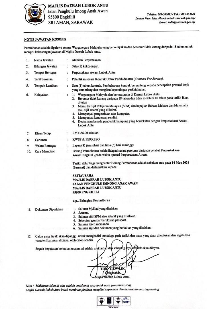 Iklan Jawatan Majlis Daerah Lubok Antu