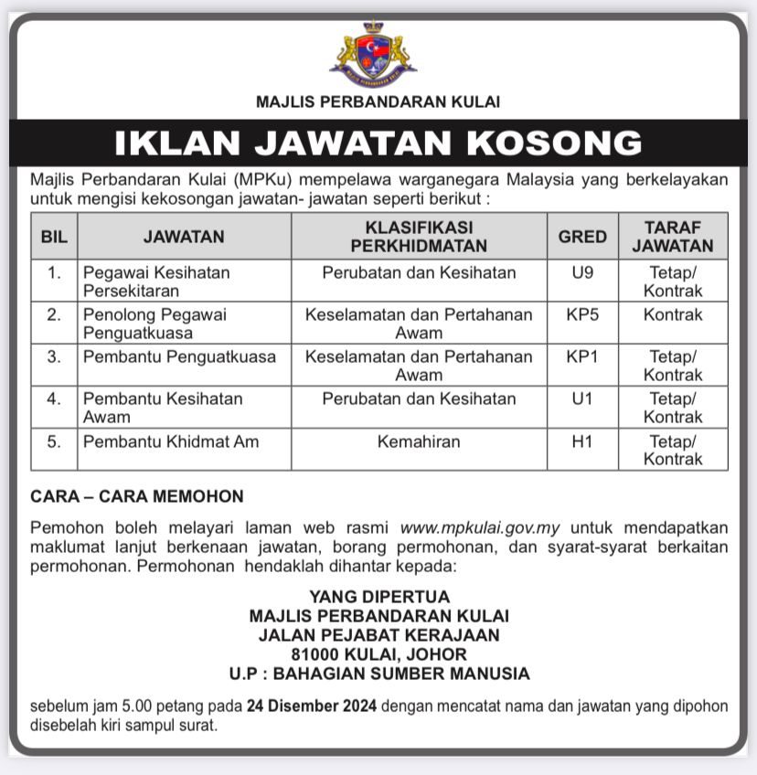 Iklan Jawatan Majlis Perbandaran Kulai