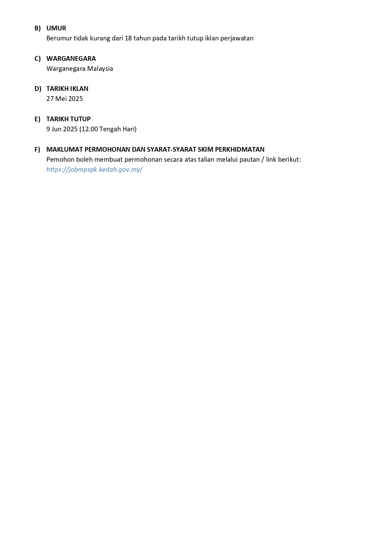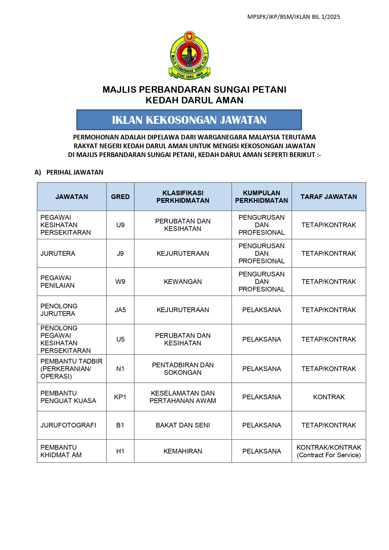 Iklan Jawatan Majlis Perbandaran Sungai Petani (MPSP)
