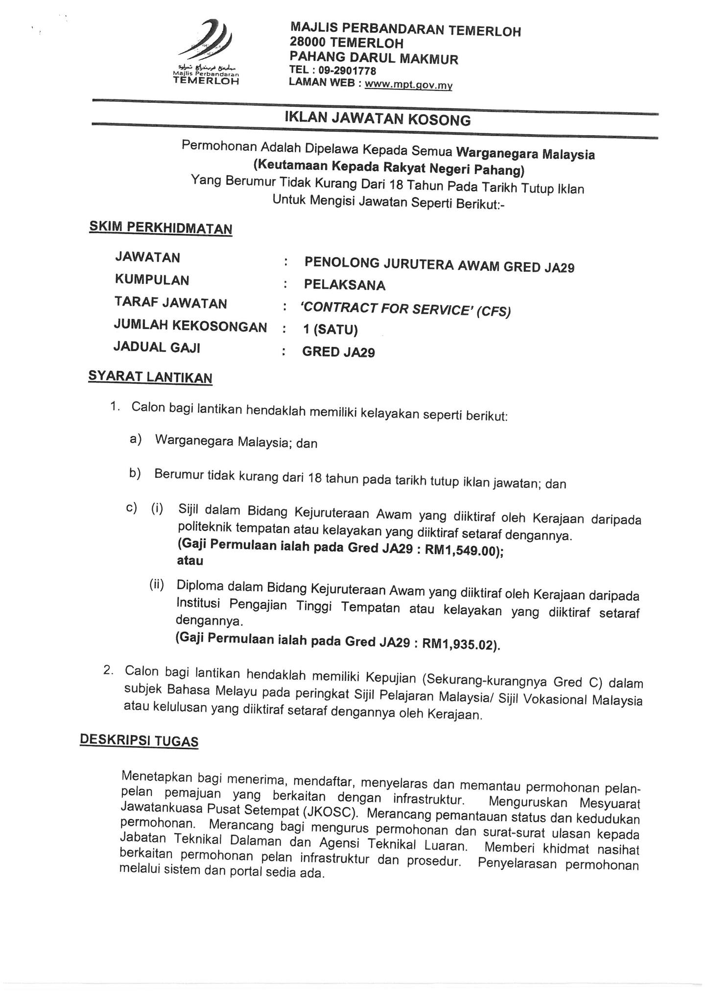 Iklan Jawatan Majlis Perbandaran Temerloh