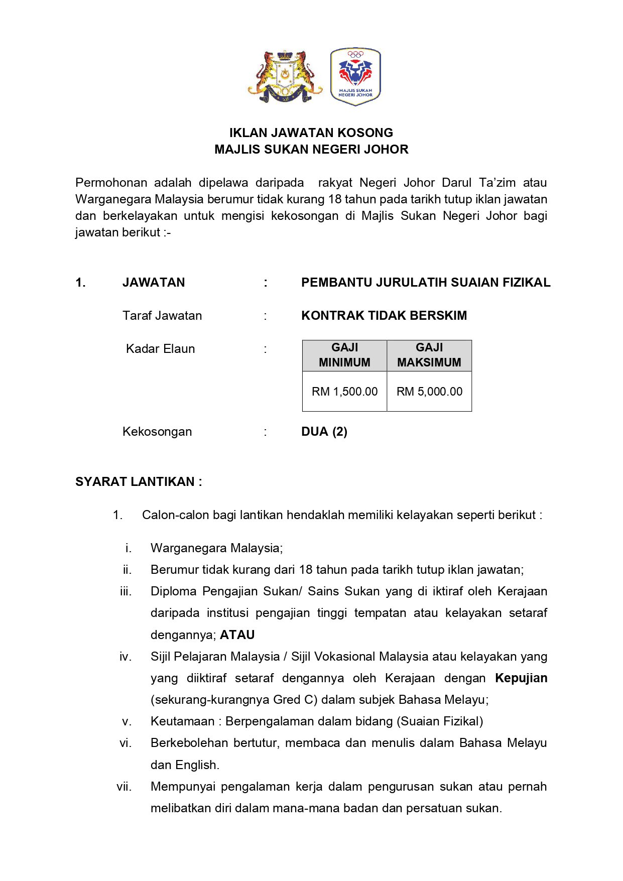 Iklan Jawatan Majlis Sukan Negeri Johor – MSNJ