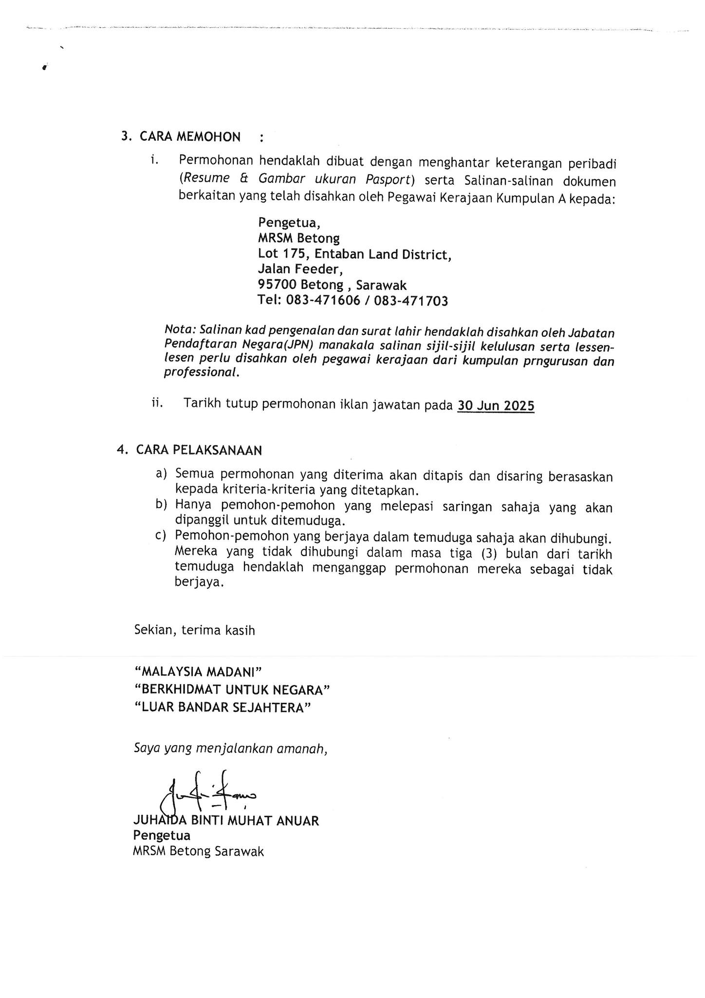 Iklan Jawatan Maktab Rendah Sains MARA (MRSM) Betong