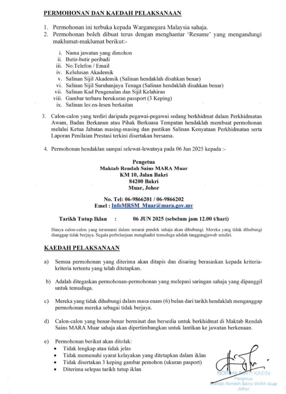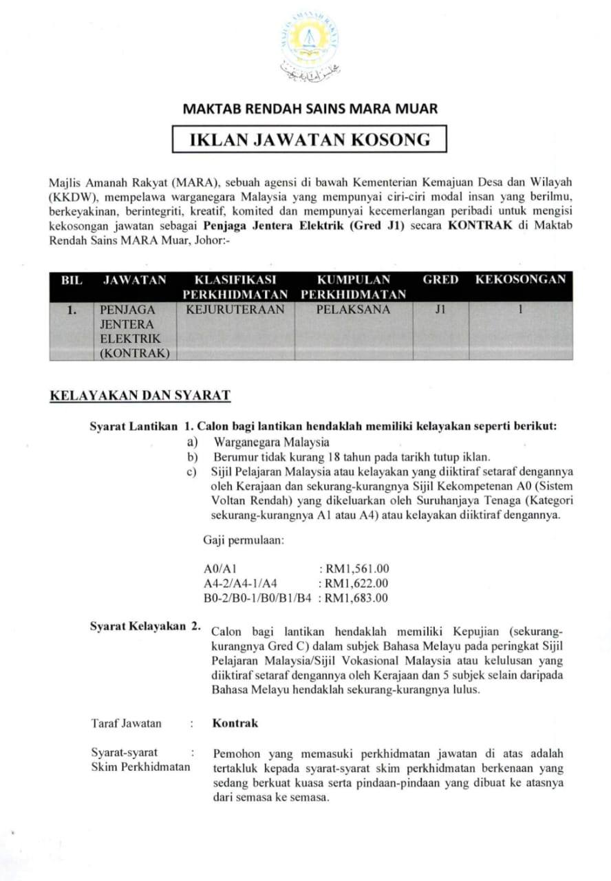 Iklan Jawatan Maktab Rendah Sains MARA (MRSM) Muar