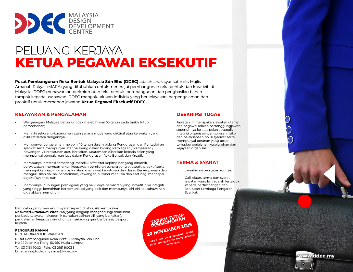 Iklan Jawatan Malaysia Design Development Centre (DDEC)