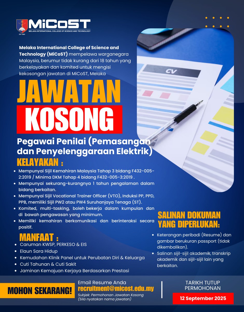 Iklan Jawatan Melaka International College Of Science And Technology (MiCoST)