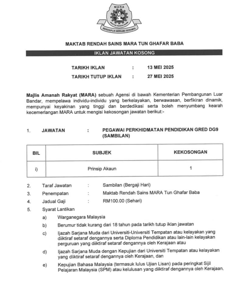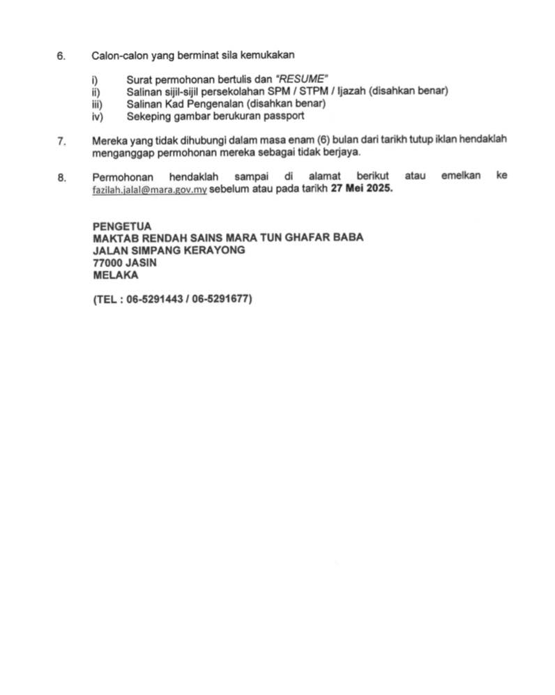 Iklan Jawatan MRSM Tun Ghafar Baba