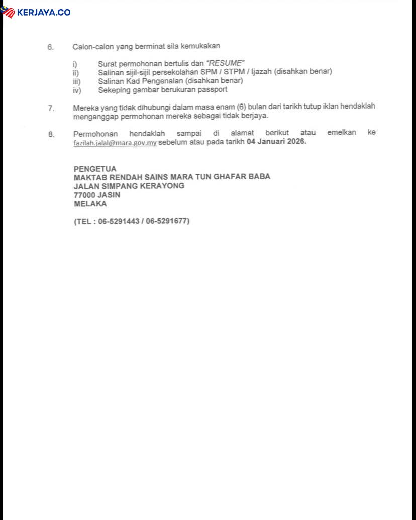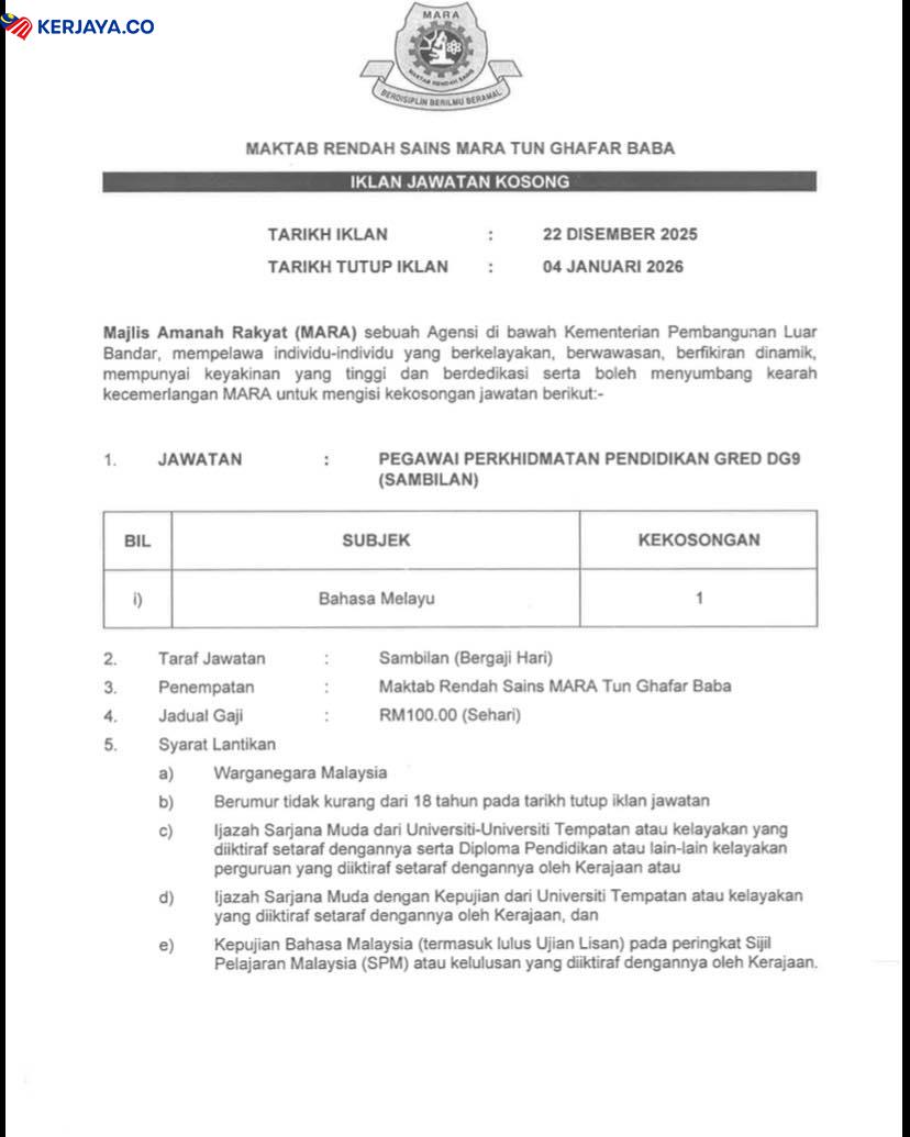 Iklan Jawatan MRSM Tun Ghafar Baba