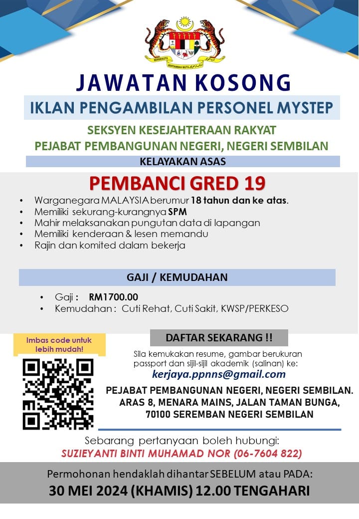 Iklan Jawatan Pejabat Pembangunan Negeri, Negeri Sembilan (ICU JPM