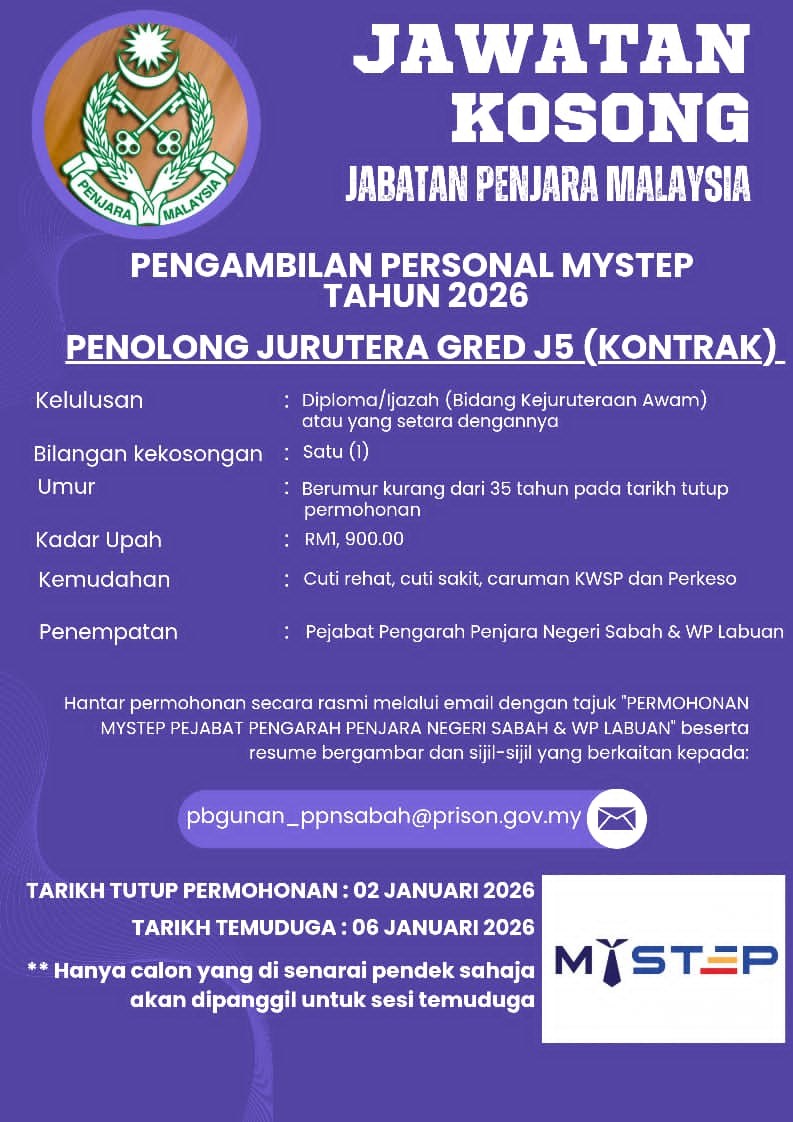 Iklan Jawatan Pejabat Pengarah Penjara Sabah & WP. Labuan