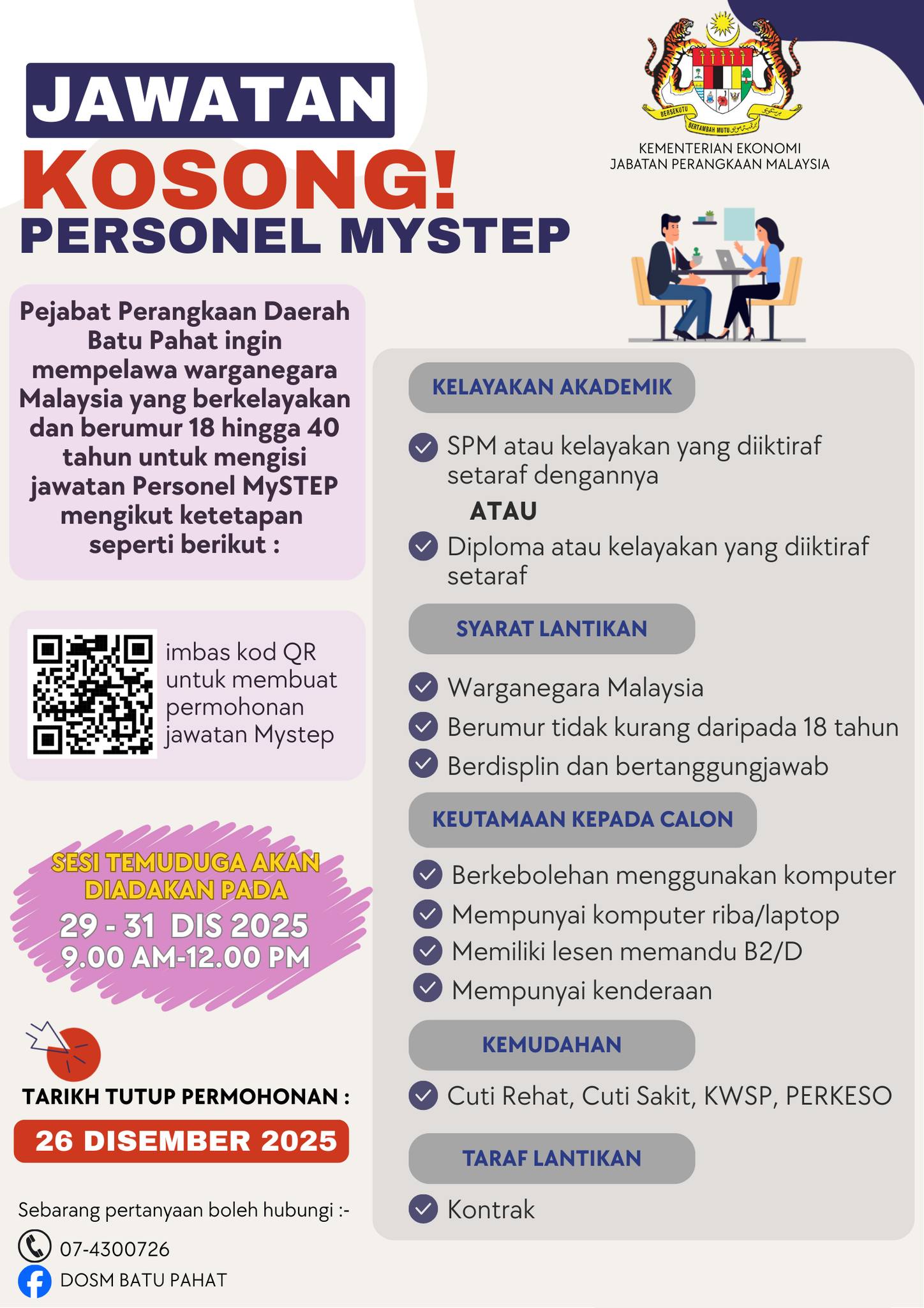 Iklan Jawatan Pejabat Perangkaan Daerah Batu Pahat