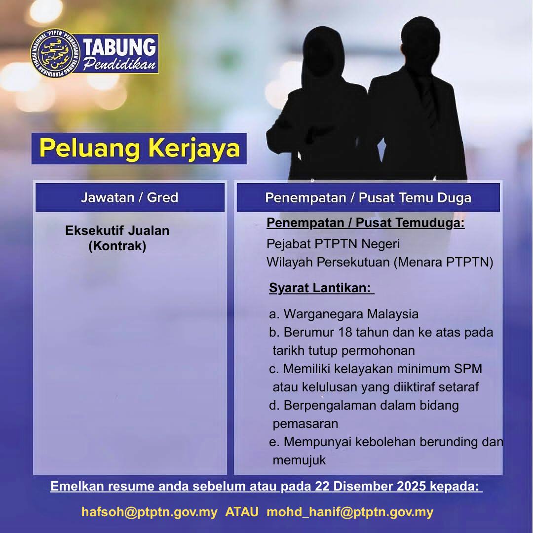 Iklan Jawatan Pejabat PTPTN Negeri Wilayah Persekutuan