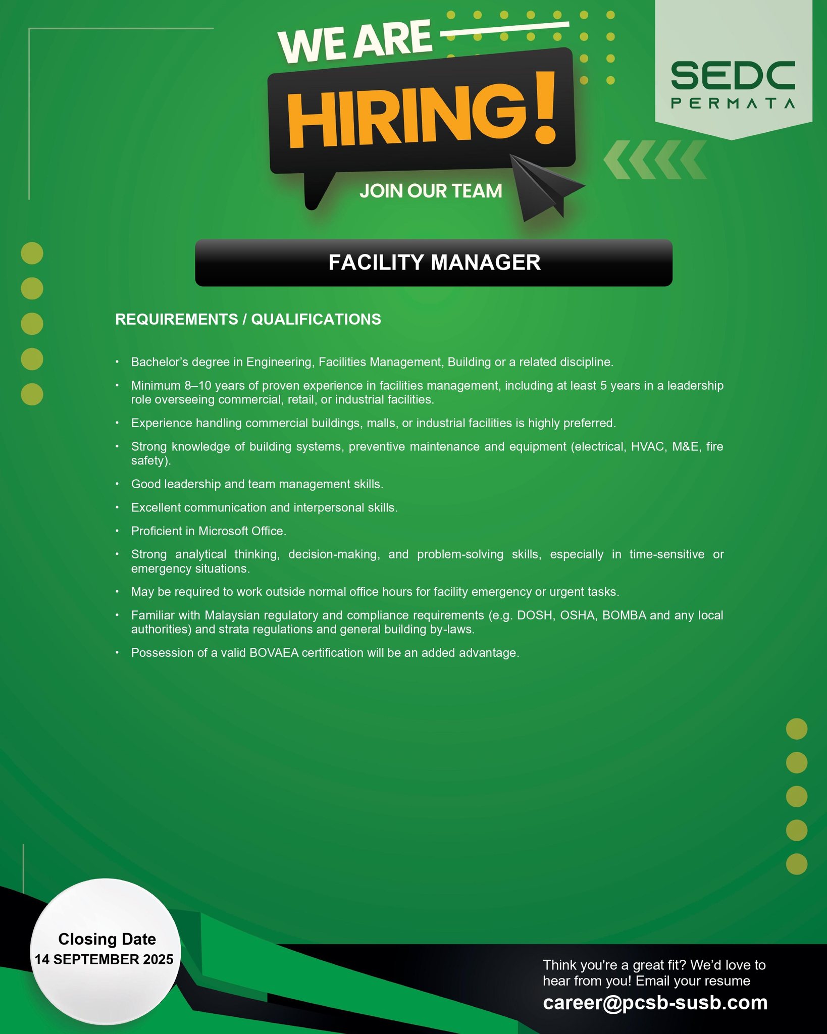 Iklan Jawatan Perbadanan Pembangunan Ekonomi Sarawak (SEDC)