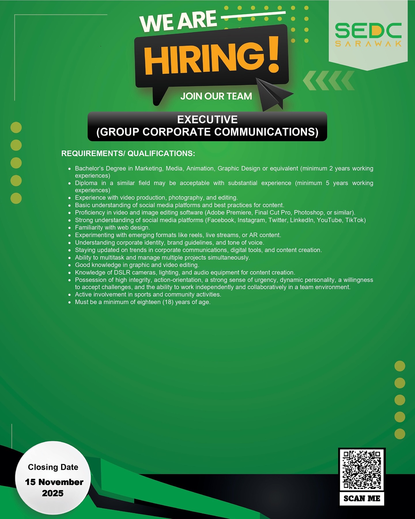 Iklan Jawatan Perbadanan Pembangunan Ekonomi Sarawak (SEDC)