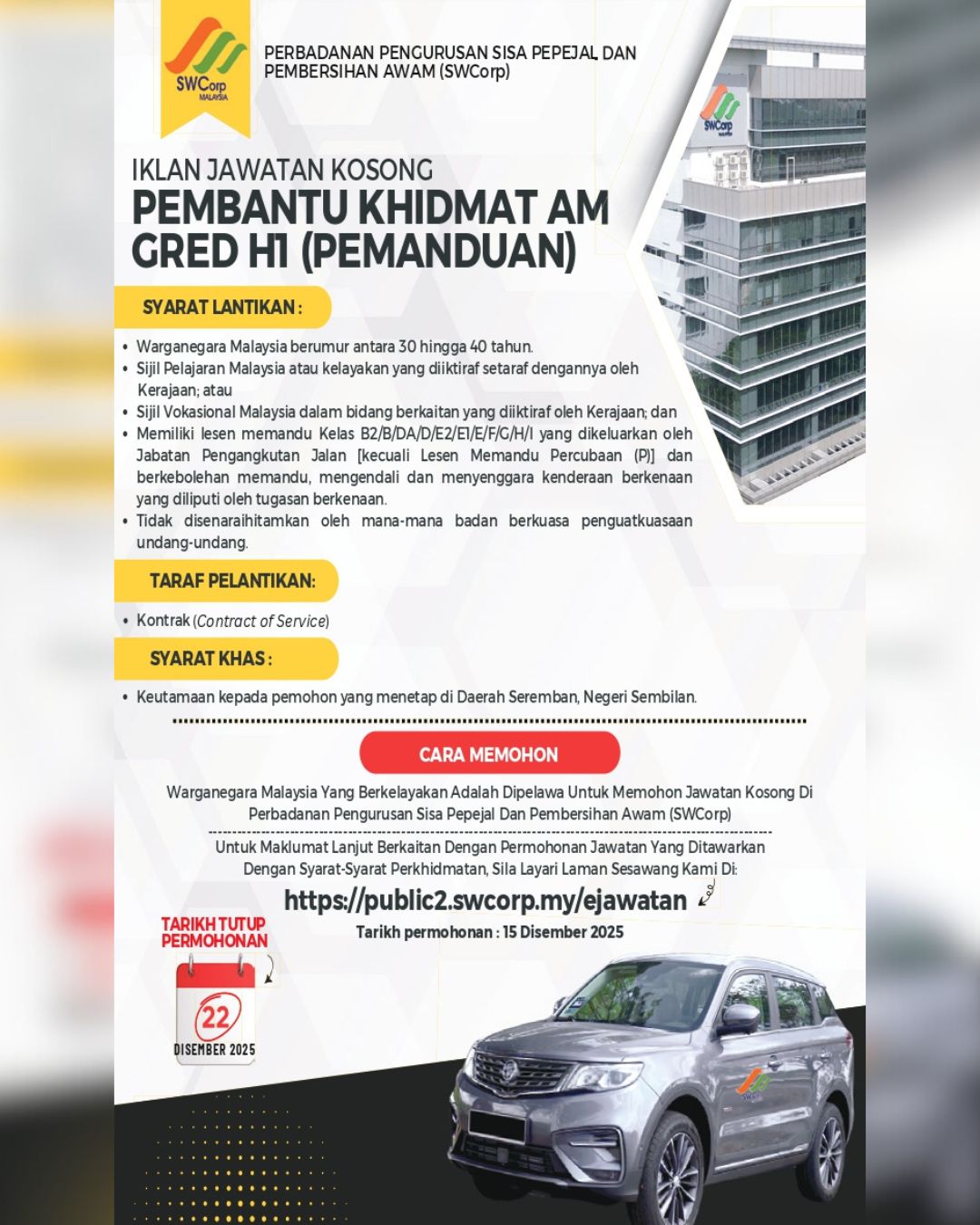 Iklan Jawatan Perbadanan Pengurusan Sisa Pepejal dan Pembersihan Awam – SWCorp