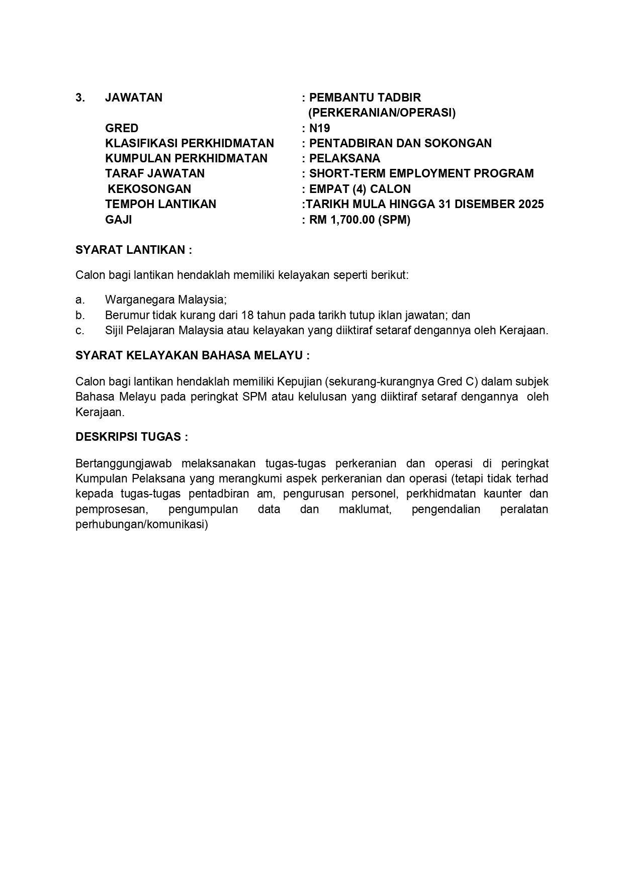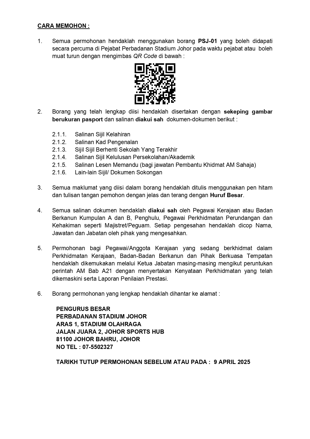 Iklan Jawatan Perbadanan Stadium Johor