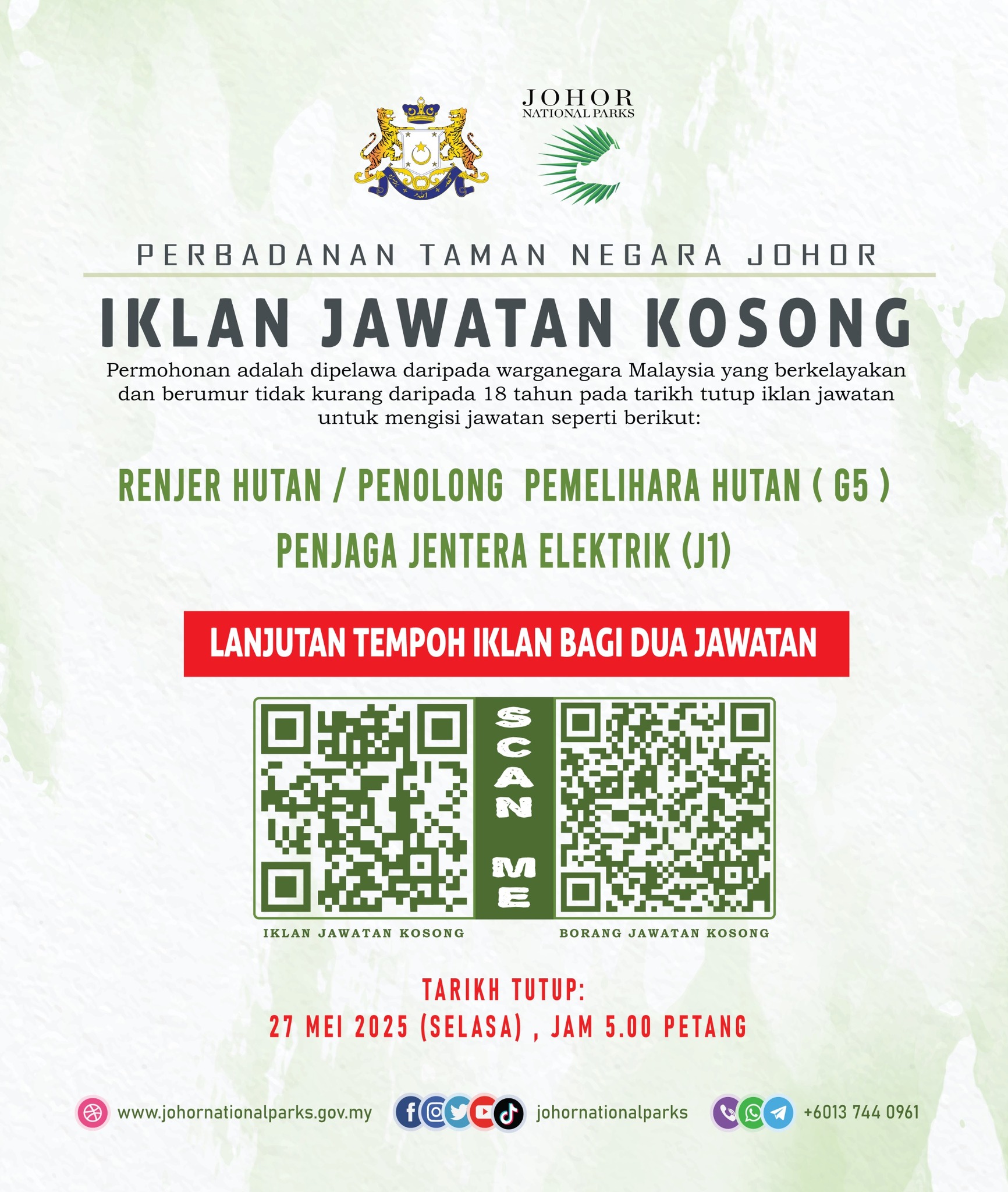Iklan Jawatan Perbadanan Taman Negara Johor