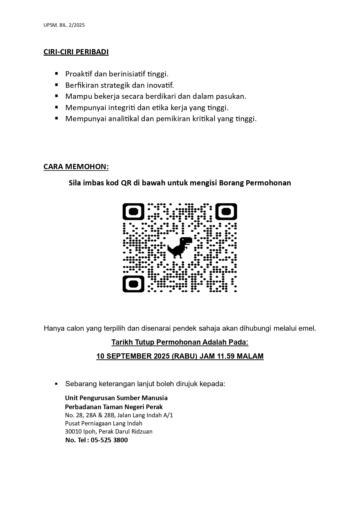 Iklan Jawatan Perbadanan Taman Negeri Perak