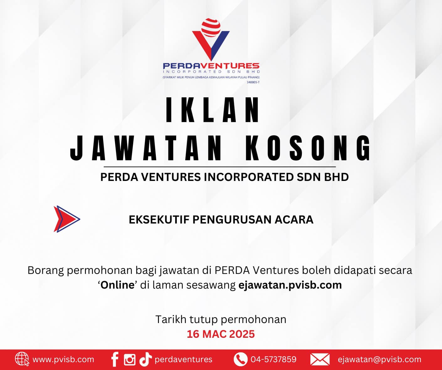 Iklan Jawatan PERDA Ventures Incorporated Sdn Bhd (PVISB)