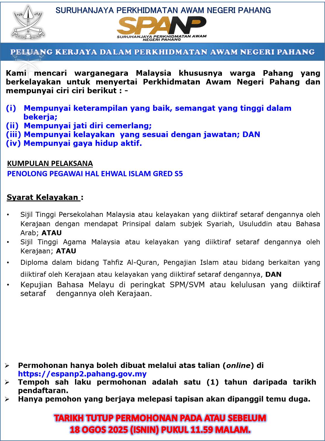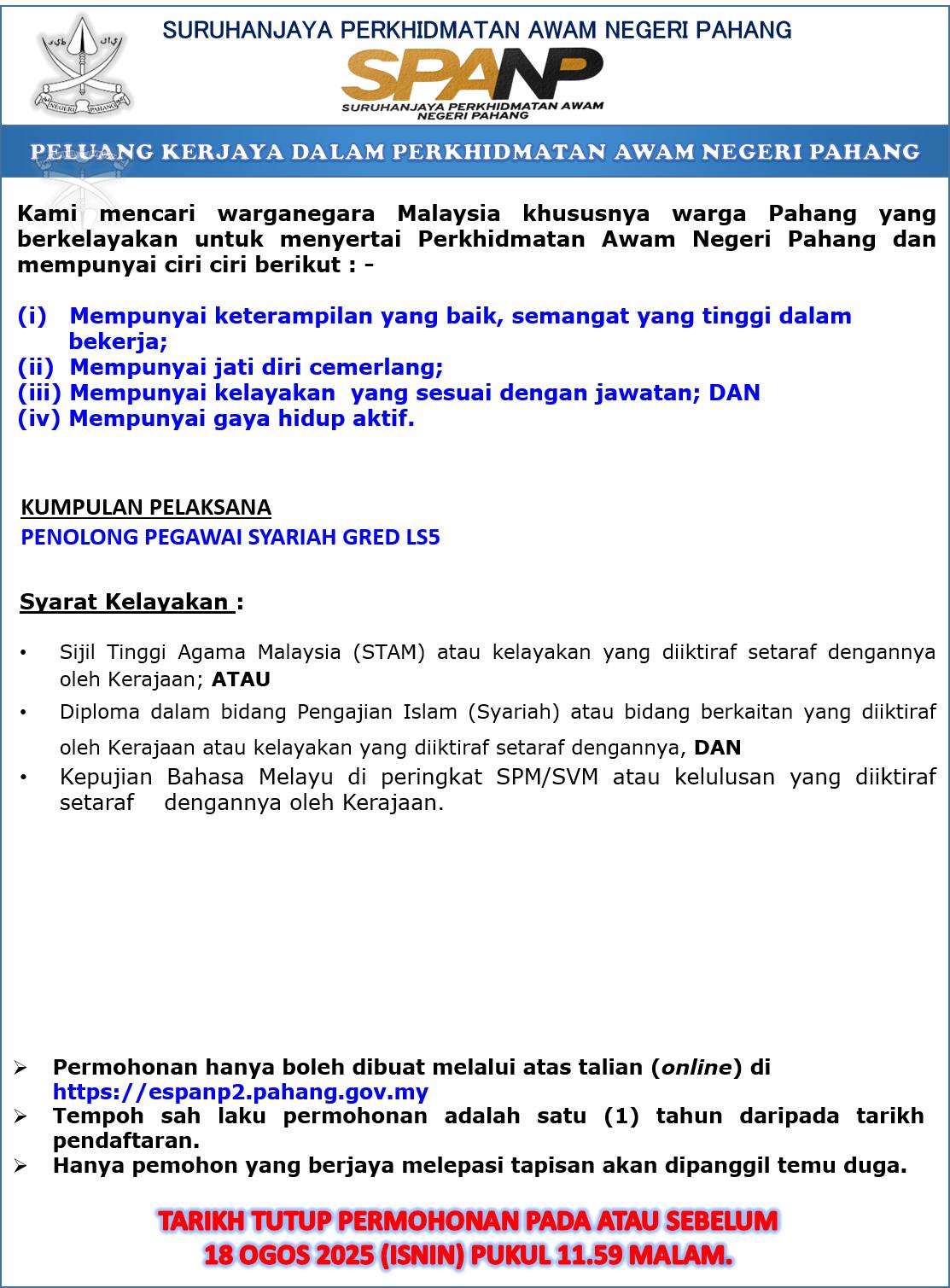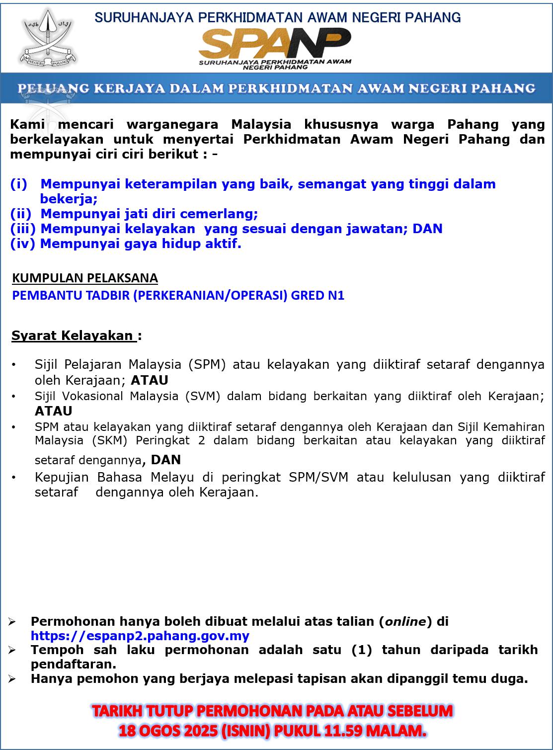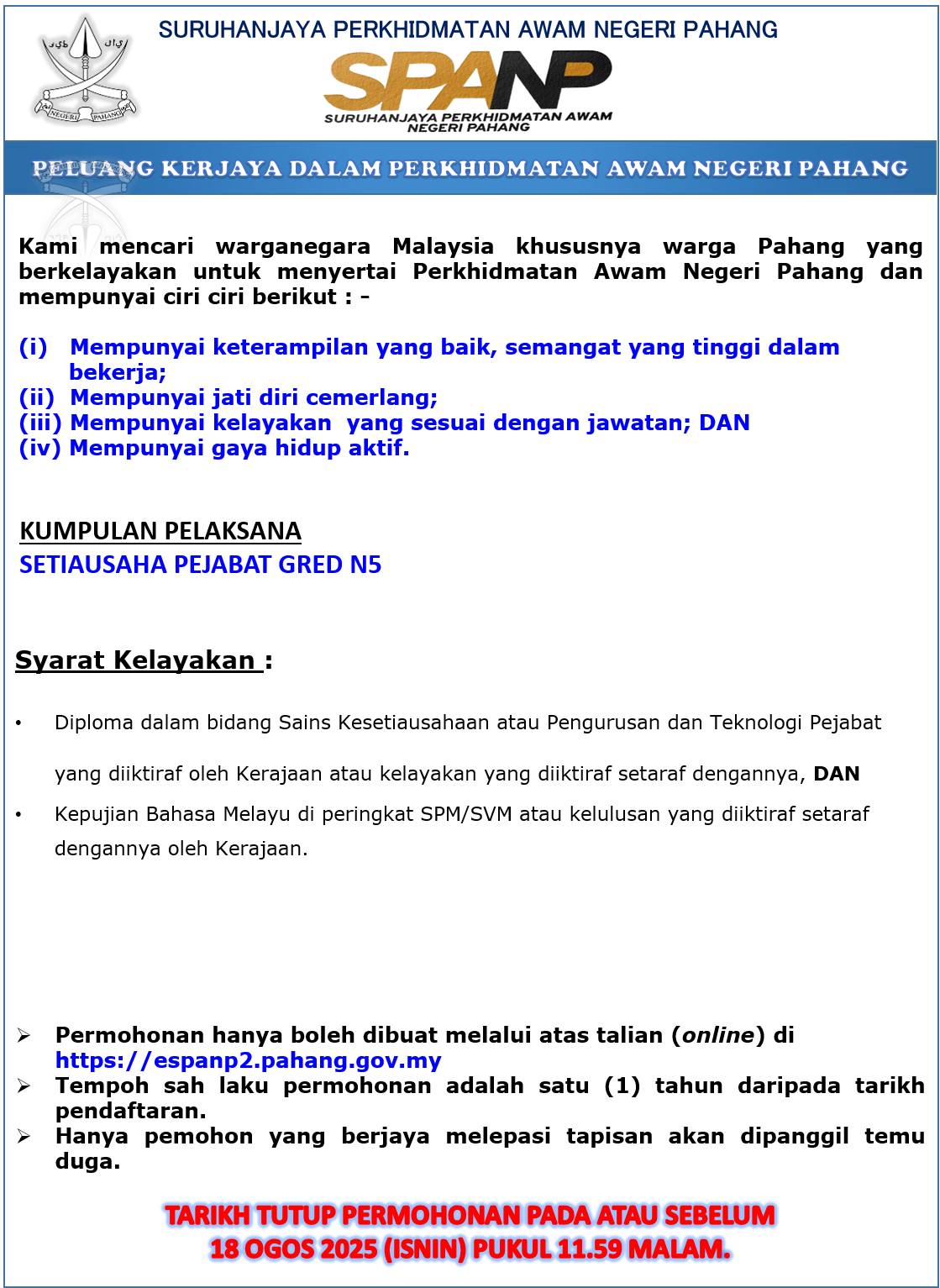 Iklan Jawatan Perkhidmatan Awam Negeri Pahang