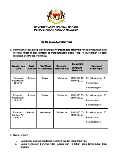Iklan Jawatan Perpustakaan Negara Malaysia