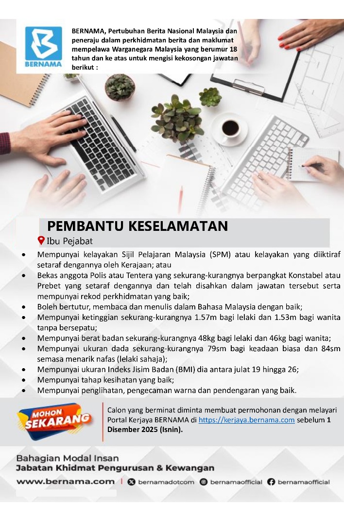 Iklan Jawatan Pertubuhan Berita Nasional Malaysia (BERNAMA)