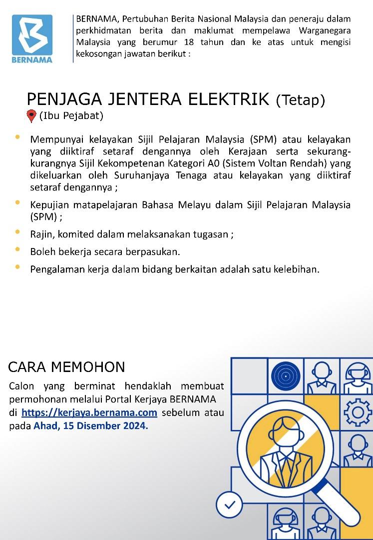 Iklan Jawatan Pertubuhan Berita Nasional Malaysia (BERNAMA)