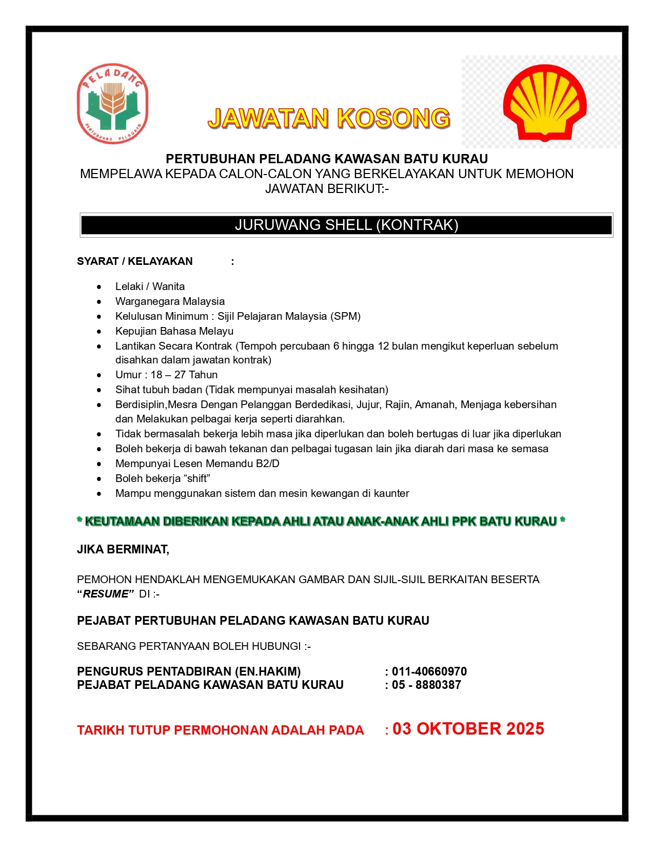 Iklan Jawatan Pertubuhan Peladang Kawasan Batu Kurau