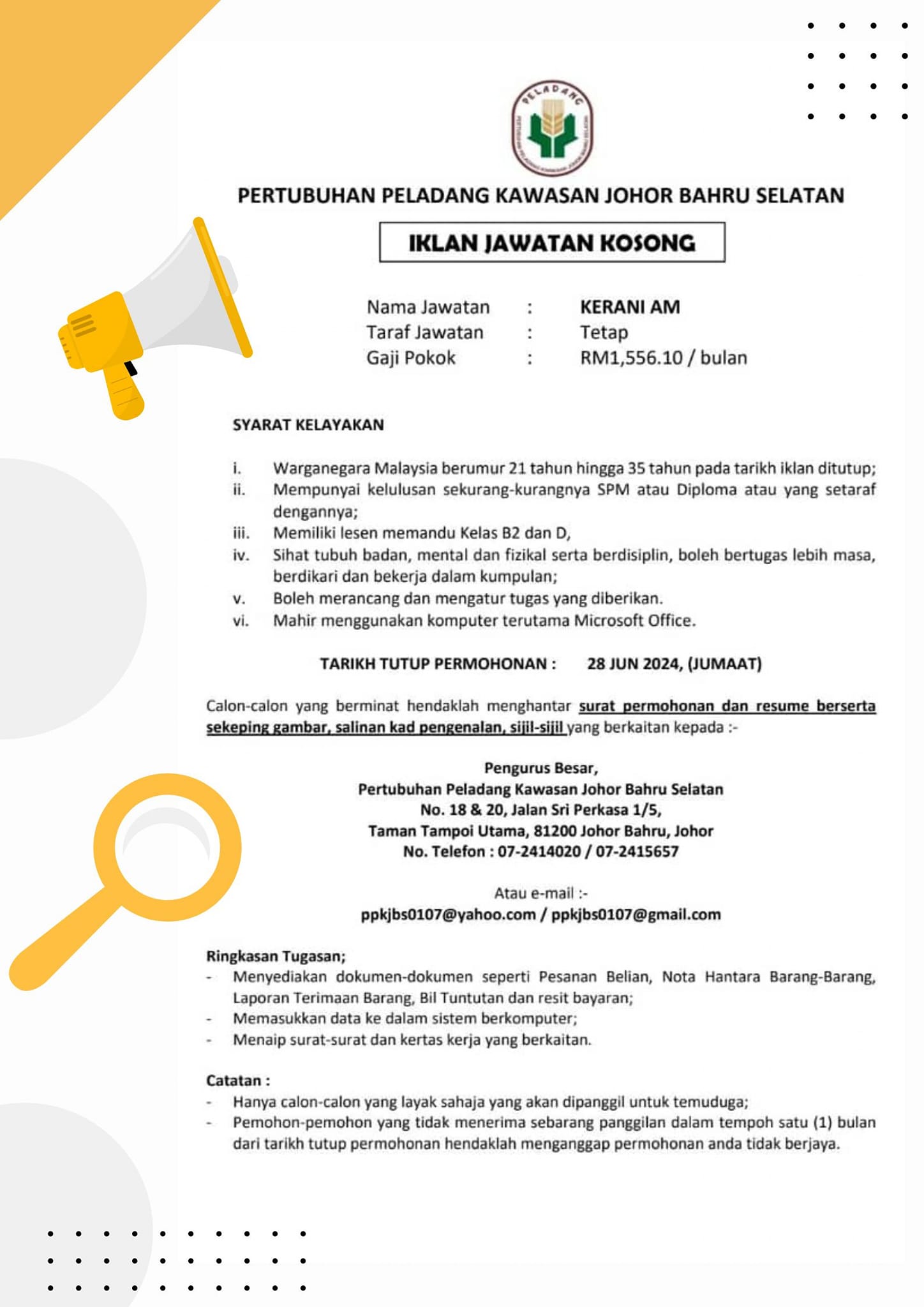 Iklan Jawatan Pertubuhan Peladang Kawasan Johor Bahru Selatan