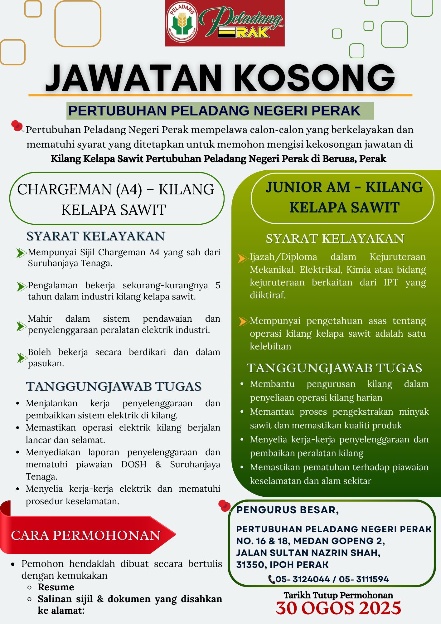 Iklan Jawatan Pertubuhan Peladang Negeri Perak