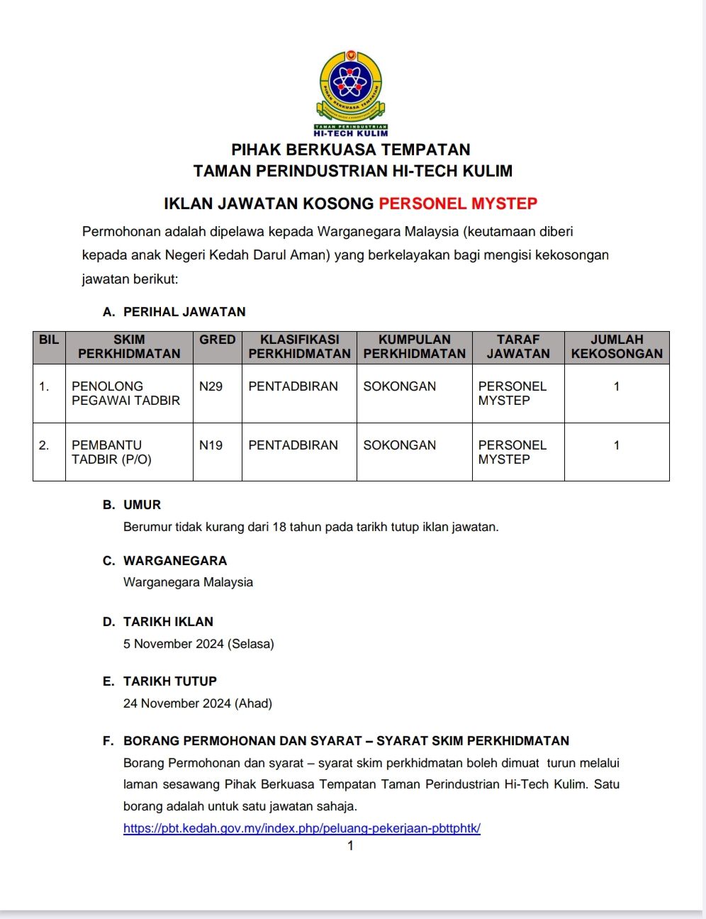 Iklan Jawatan Pihak Berkuasa Tempatan Taman Perindustrian Hi-Tech Kulim