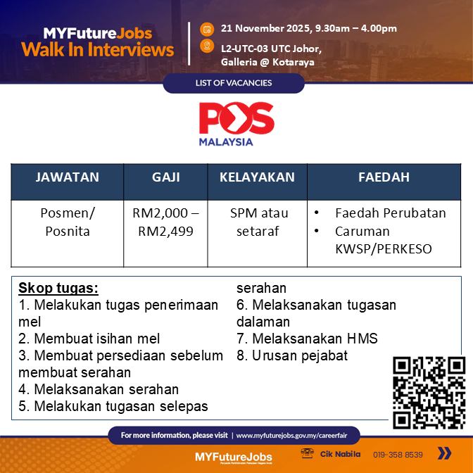 Iklan Jawatan Pos Malaysia Berhad