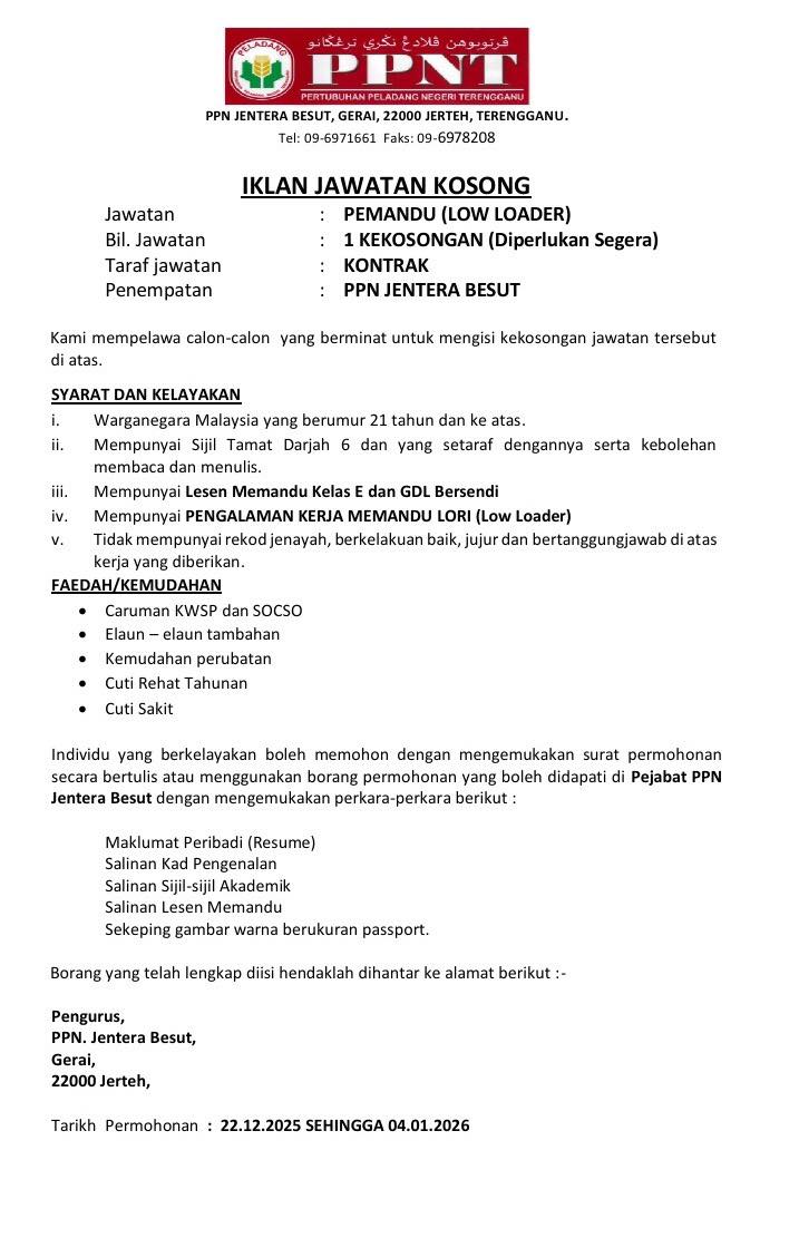 Iklan Jawatan PPN Jentera Terengganu