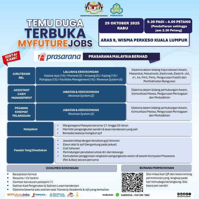 Iklan Jawatan Prasarana Malaysia Berhad