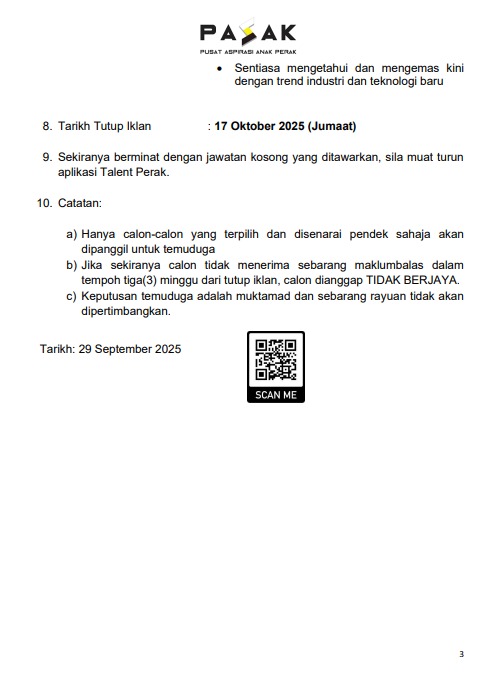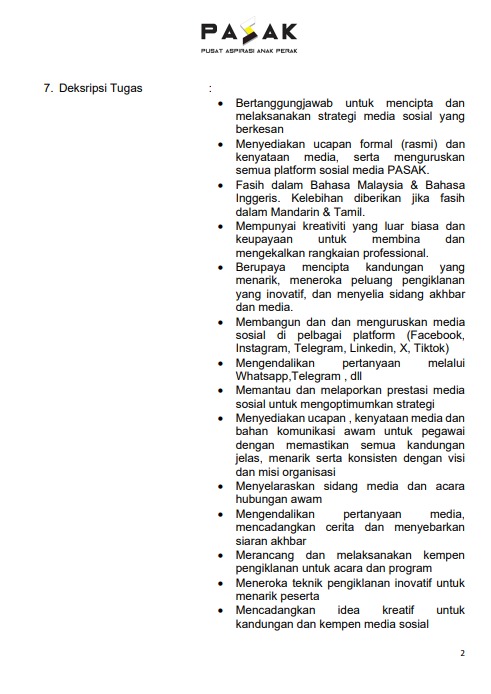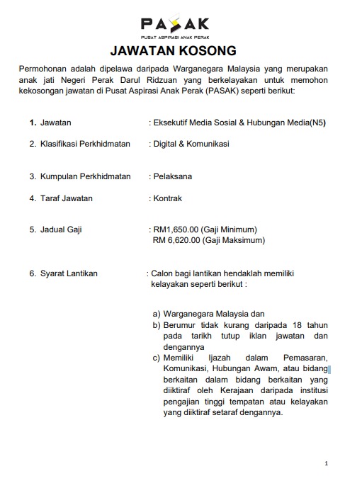 Iklan Jawatan Pusat Aspirasi Anak Perak (PASAK)