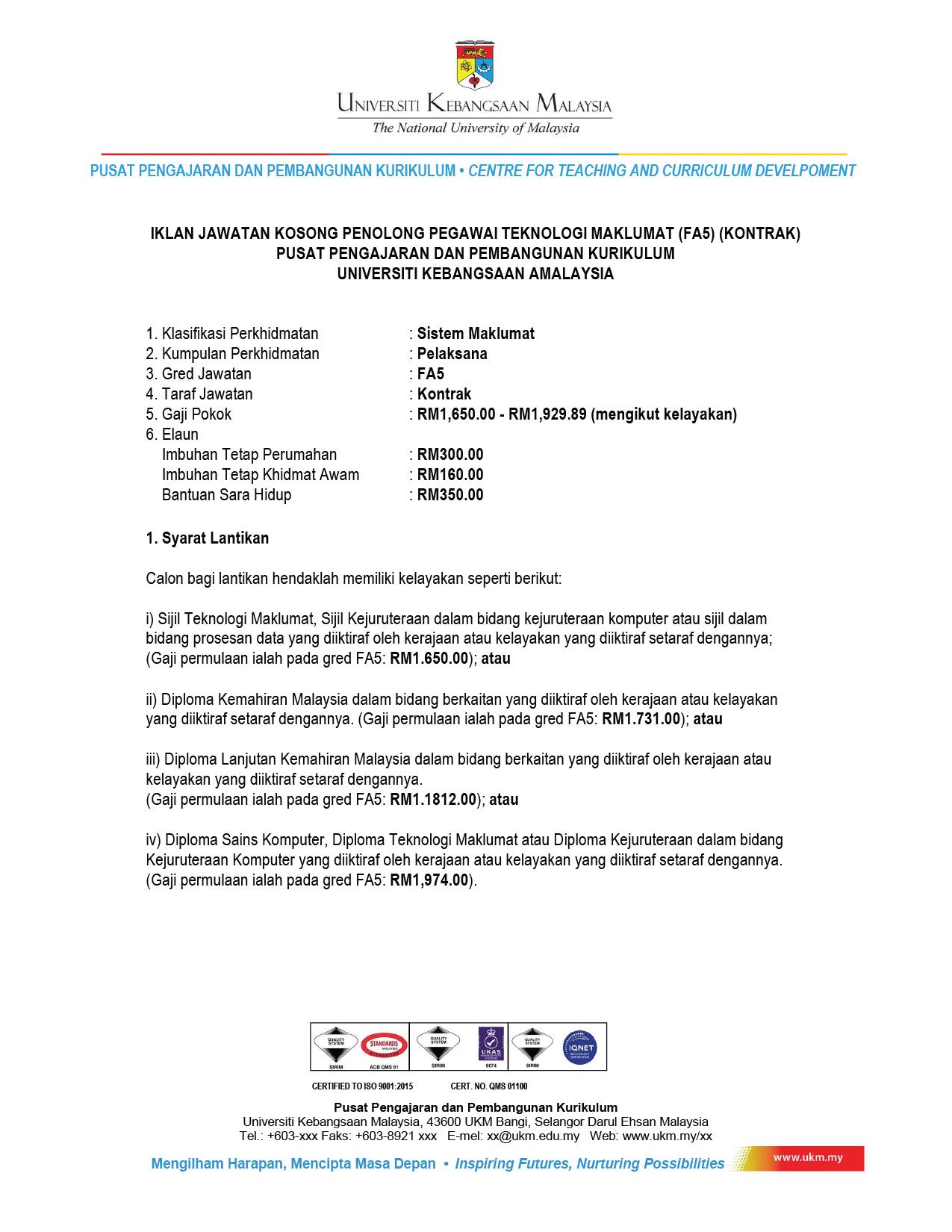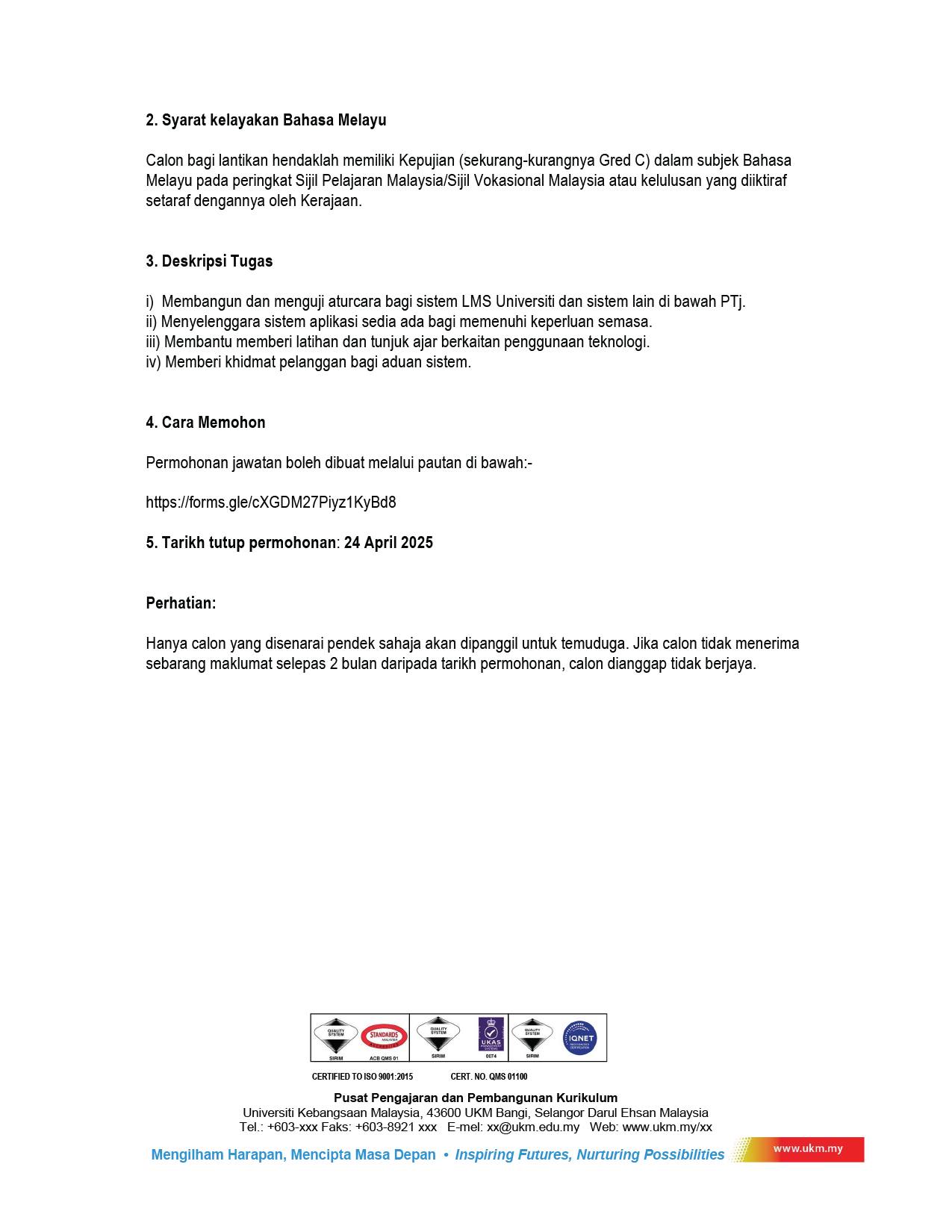 Iklan Jawatan Pusat Pengajaran dan Pembangunan Kurikulum, Universiti Kebangsaan Malaysia (UKM BORANG PERMOHONAN