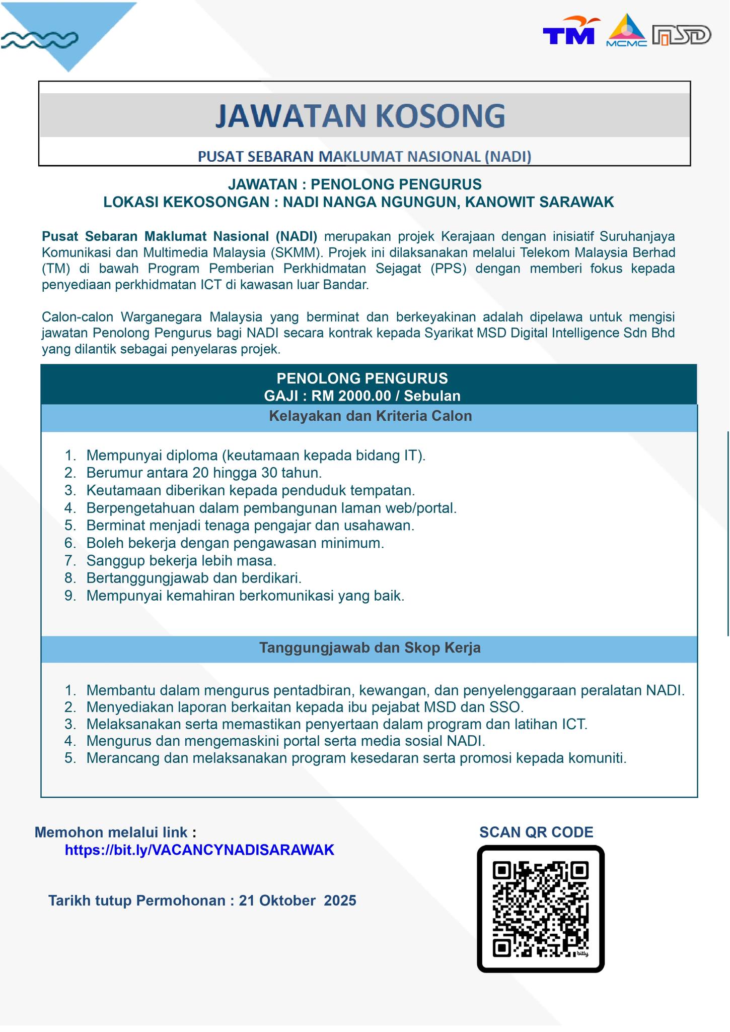 Iklan Jawatan Pusat Sebaran Maklumat Nasional (NADI)